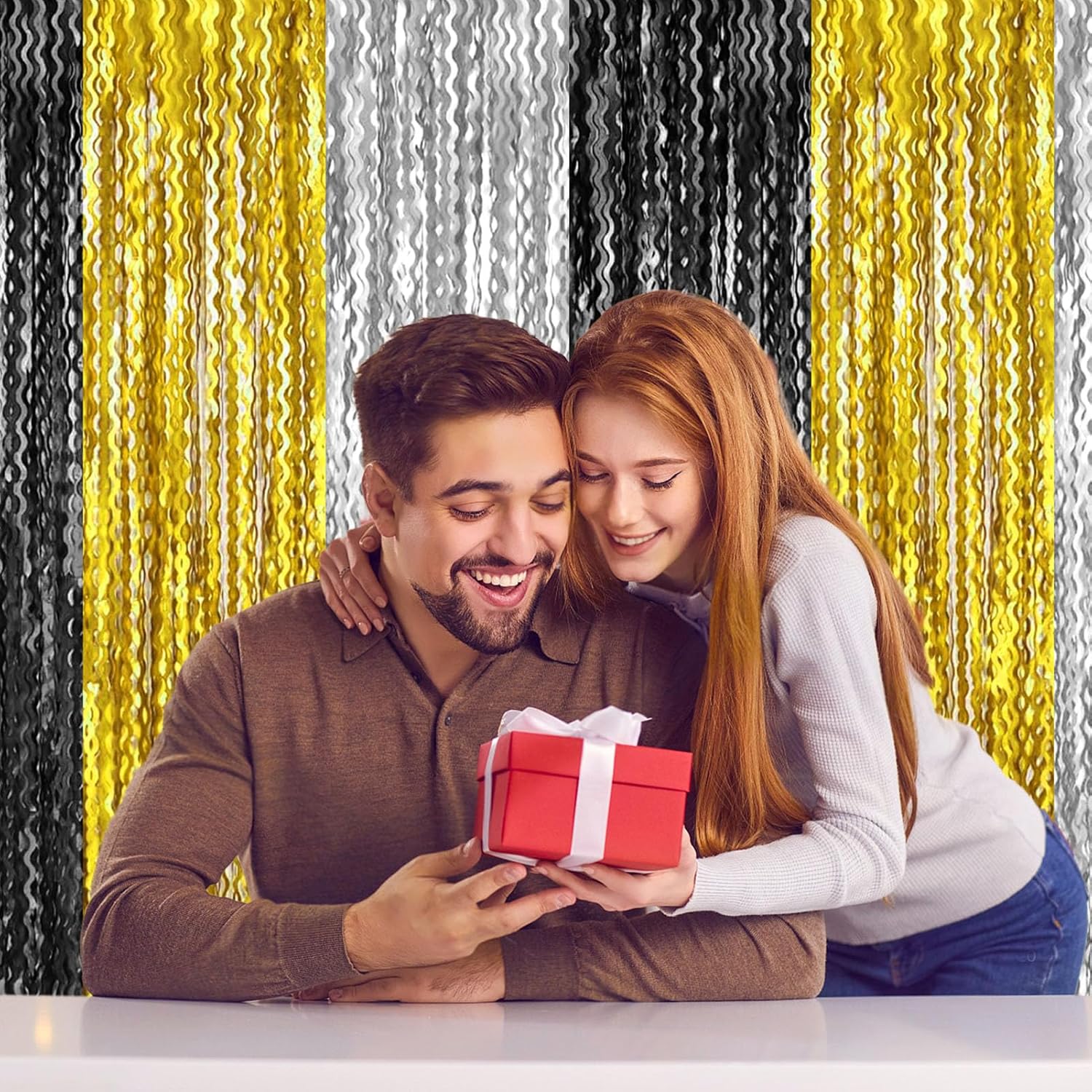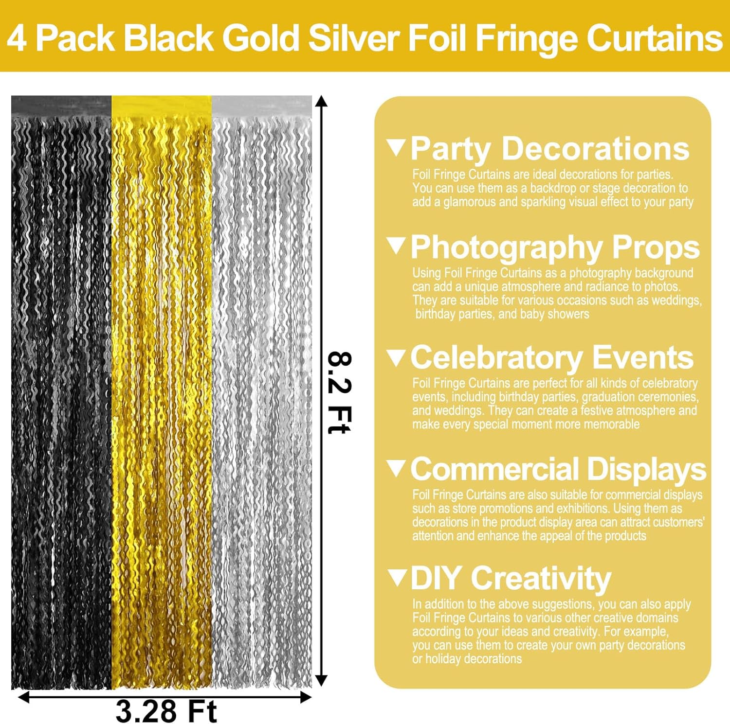 - Easy To Assemble | Strong Adhesive | Not Easy Fade : The foil fringe curtain backdrop party decorations come with double-sided adhesive tape, easy to use, just tear off the back of adhesive tape, then paste this streamers backdrop curtains on the top of wall, window, table, or as door fringe decoration.
