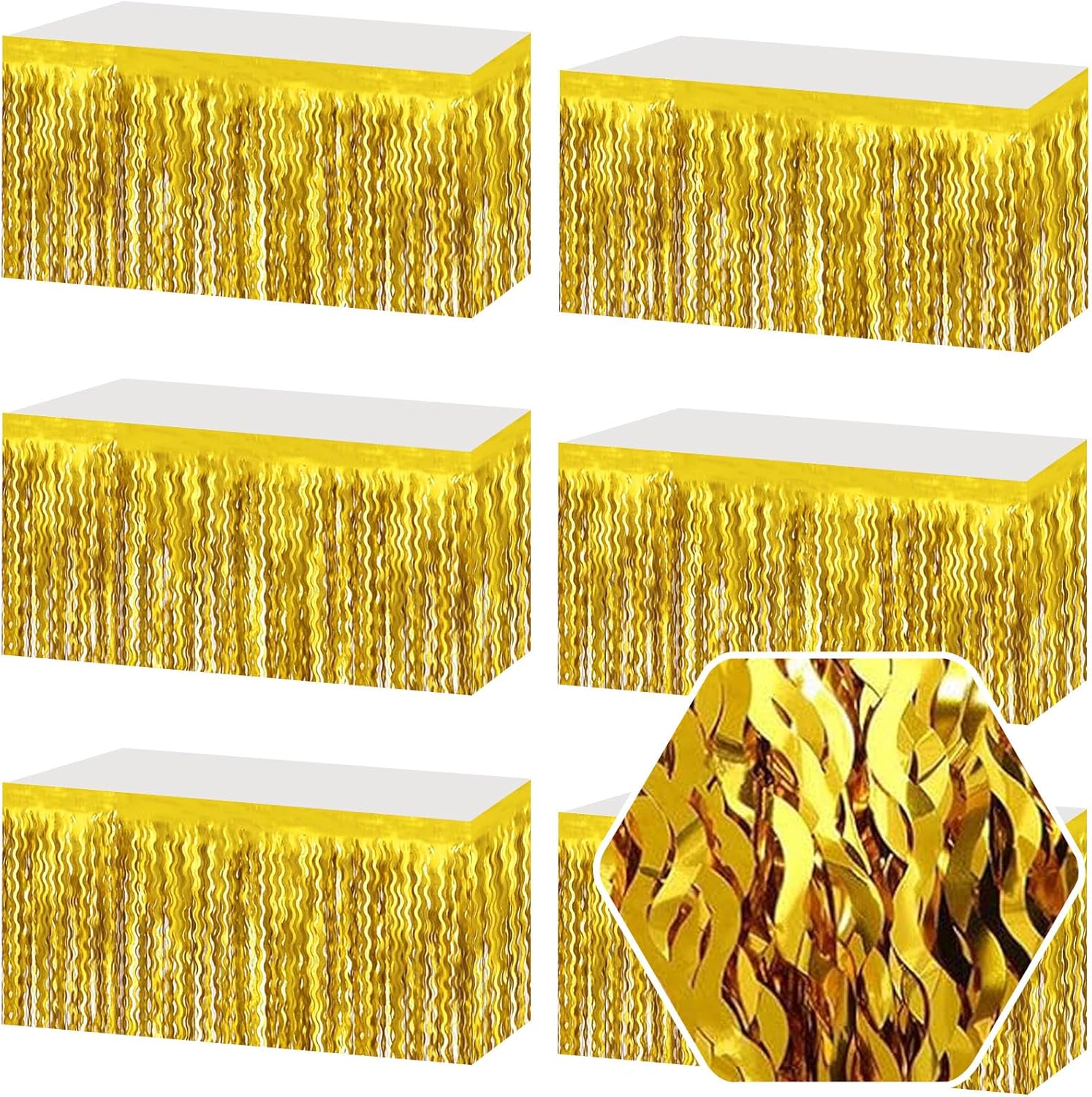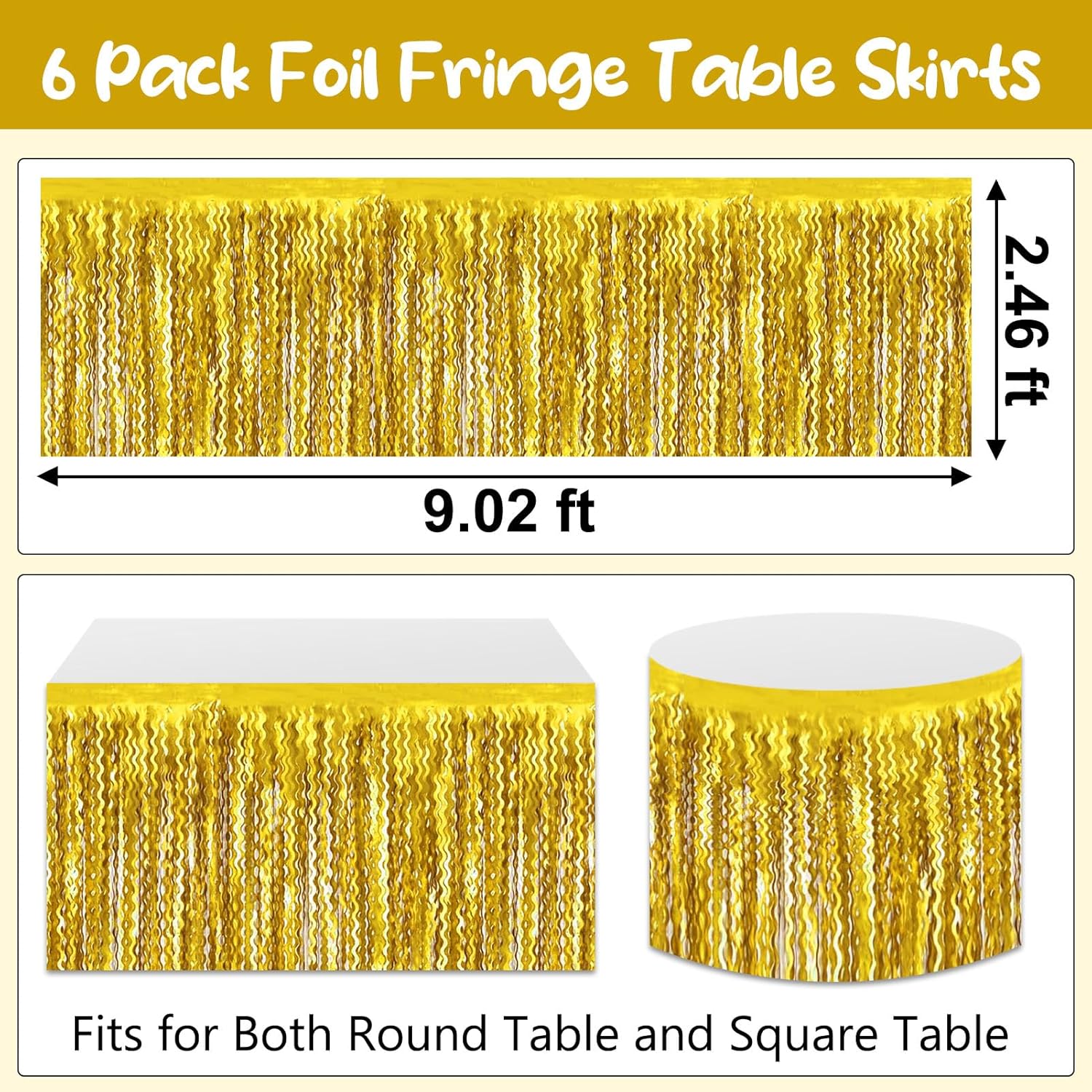 6 Pack 29 x108 Inch Gold Wave Foil Fringe Table Skirts Metallic Banner for Tinsel Streamer Garland Backdrop for Parade Floats, Mother's Day, Easter, Wedding, Birthday Party Decoration