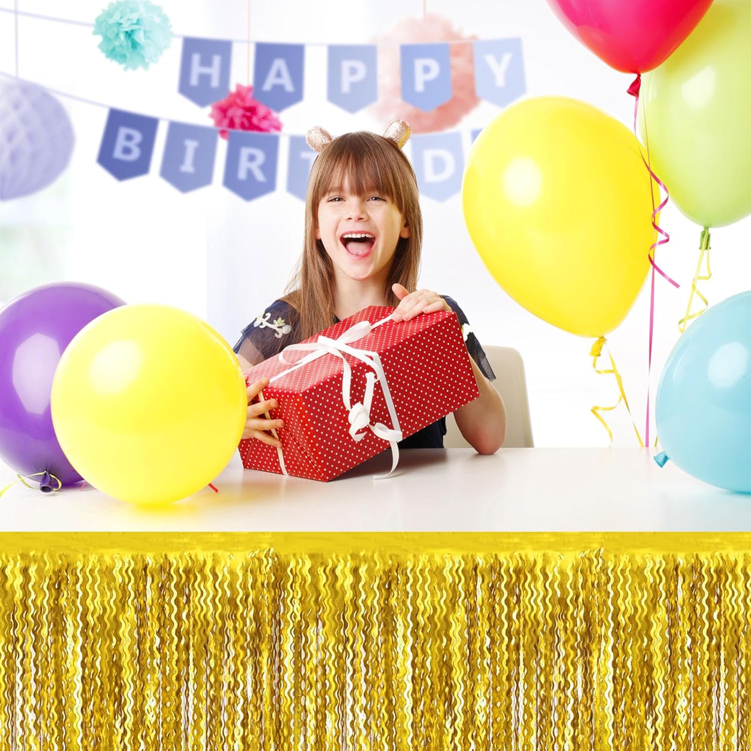 - Specifications and dimensions:6 Packs metallic foil tassel table skirt 29x108 inches, which is enough to decorate your party.