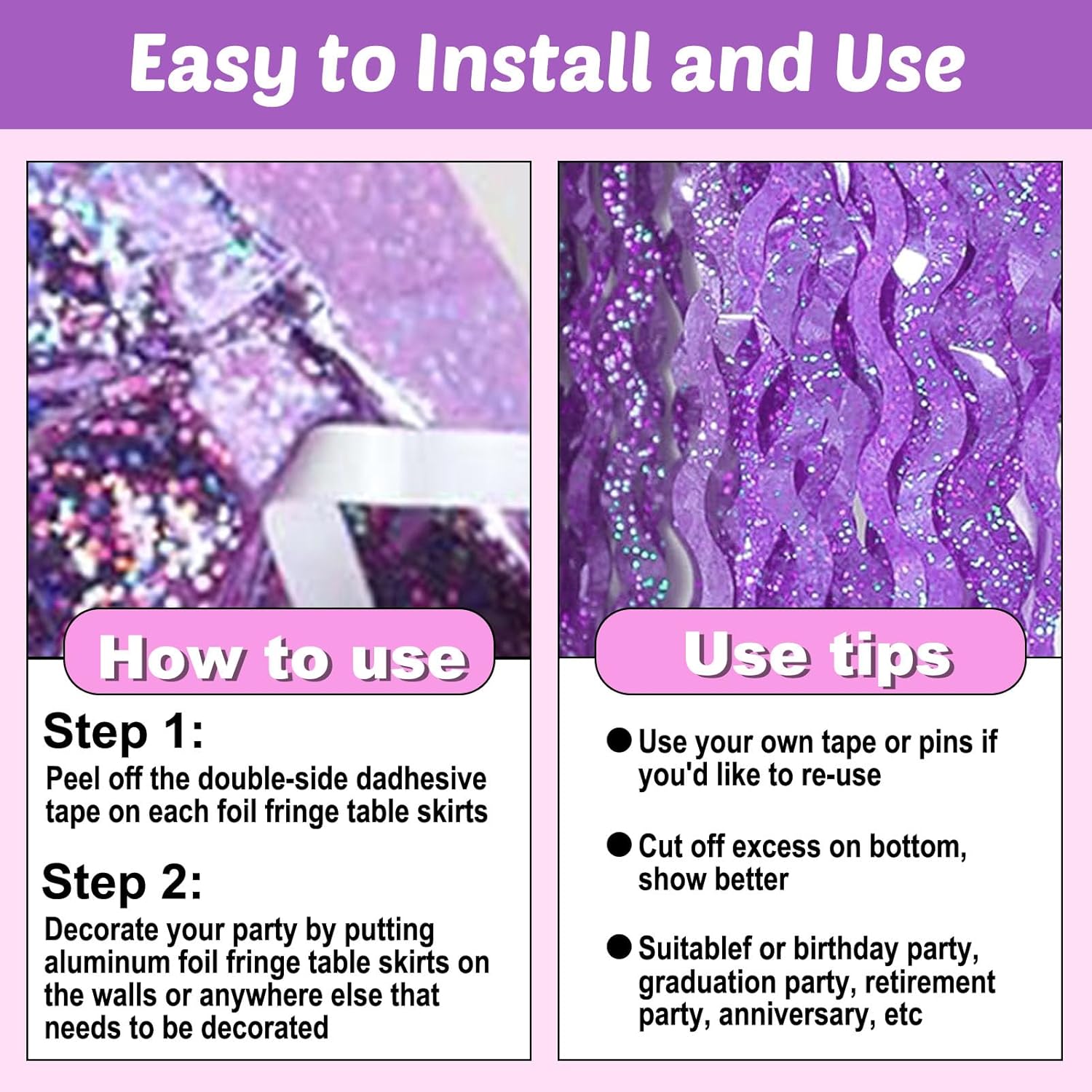 6 Pack 29x108 Inch Light Purple Wave Foil Fringe Table Skirts Metallic Banner for Tinsel Streamer Garland Backdrop for Parade Floats Mother's, Graduate, Mardi Gras, Birthday, Wedding Party Decorations