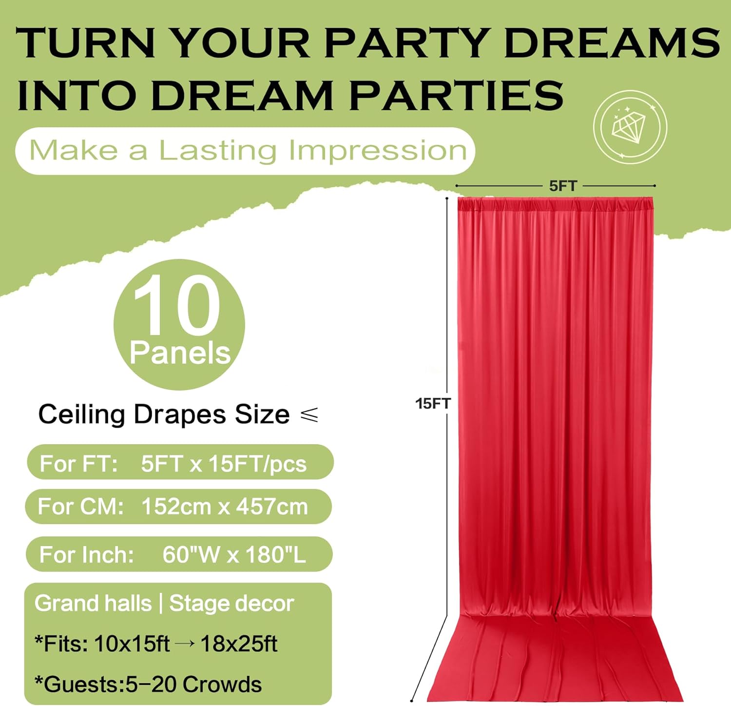 - Wide Compatibility: This 15ft tall backdrop drapes are perfect for kinds of occassions. Such as wedding party decoration, baby showers, birthday theme party backdrops, photobooth, photoshoot, reception background, graduation, home decoration, drapes for backdrops and more.