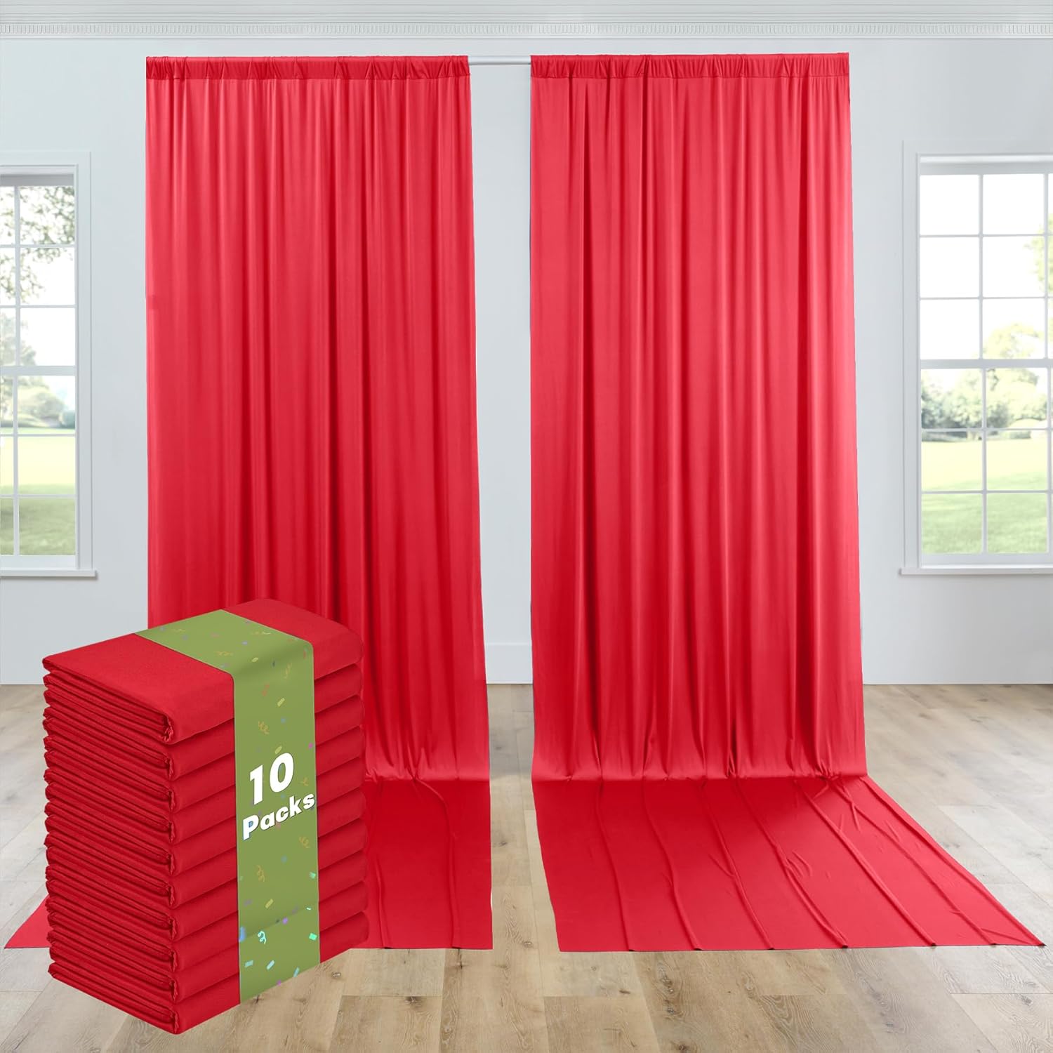 - 15FT Extra Long Backdrop Drapes: 10 Panels 5ftx15ft Red Backdrop Curtains for Parties. Totally 50FT(Width) x 15FT(Height). cortinas para fiestas decoracion.