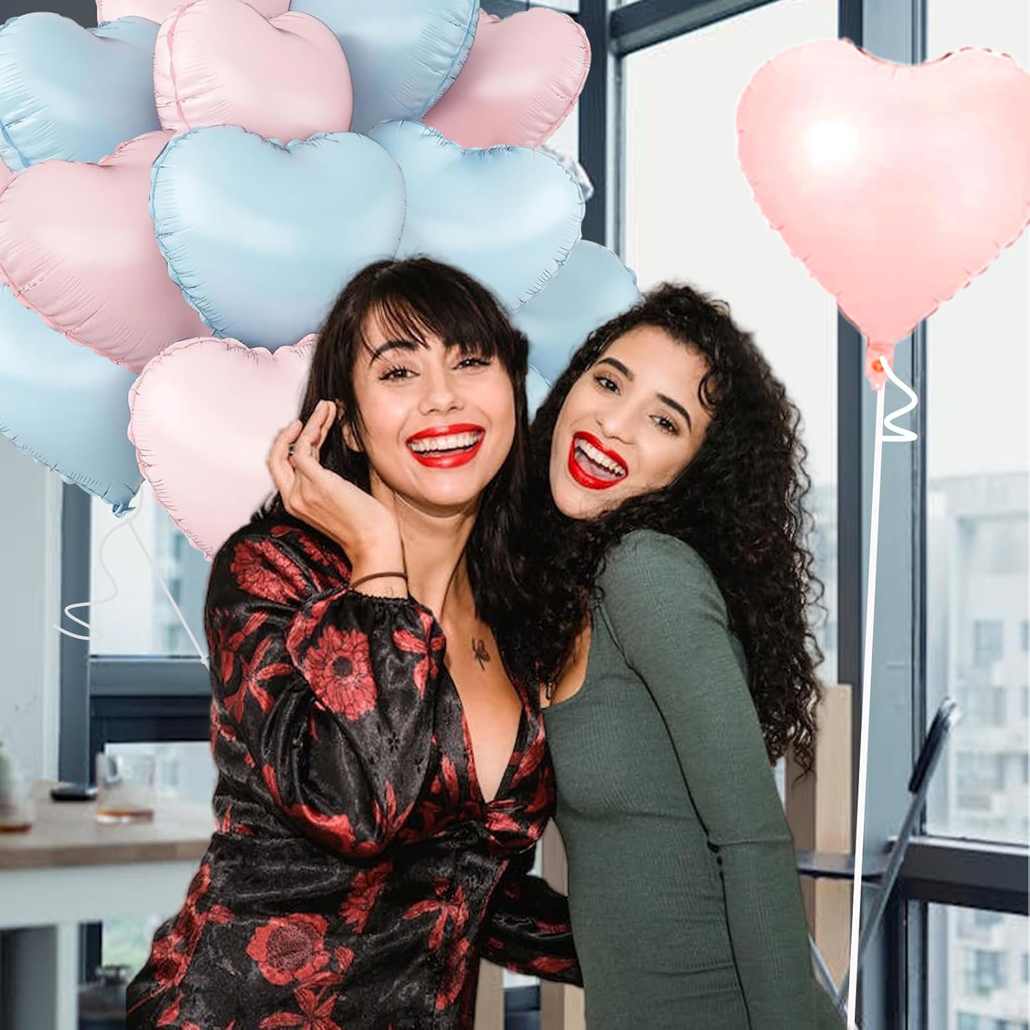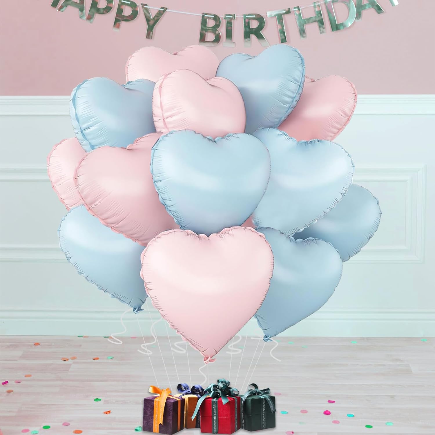 Blue Pink Heart Balloons,18inch Light Blue Heart Shaped Foil Balloons & Baby Pink Helium Mylar Balloon for Anniversary Wedding Engagement Birthday Party Baby Shower Decorations