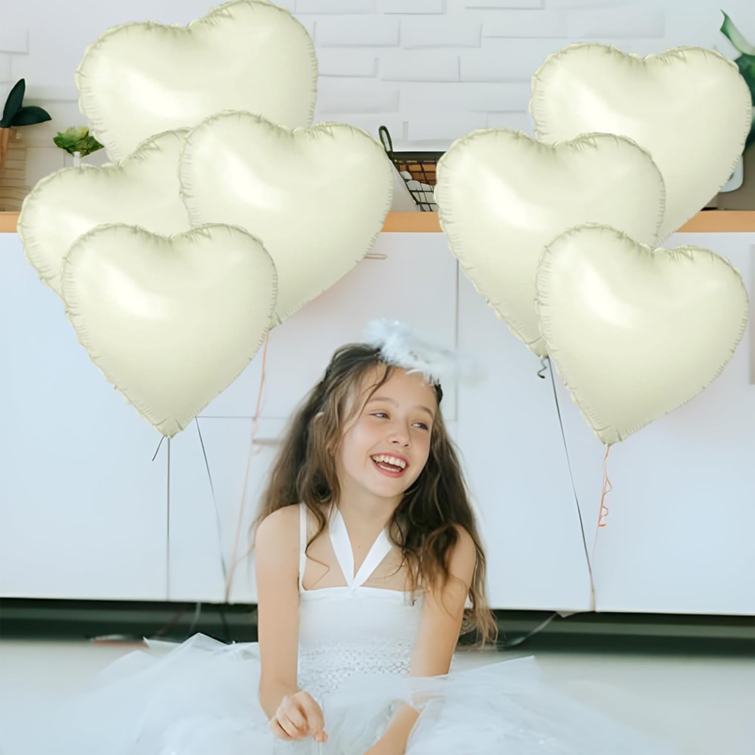 - Heart-Shaped Foil Balloons:The package includes 12Pcs Creamy White balloons measuring 18 inches, 1Pcs white ribbon 393 inches long, 1Pcs straw, which can help you decorate the party better.