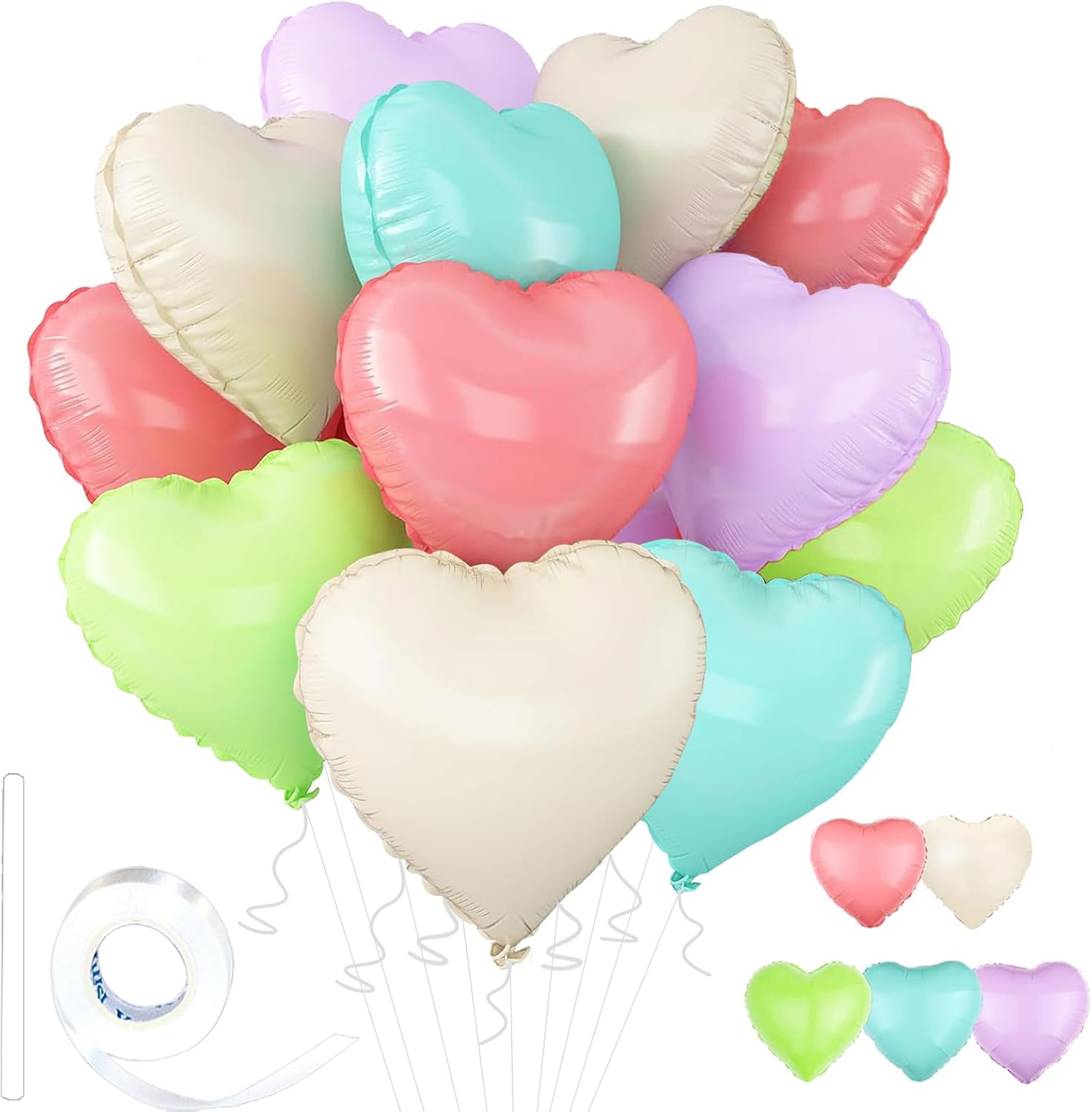 - Heart-Shaped Foil Balloons:The package includes 2Pcs Pastel Purple ,2Pcs Pastel Blue,2Pcs Pastel Green,3Pcs Pastel White and 3Pcs Red Foil balloons measuring 18 inches, 1Pcs white ribbon 393 inches long, 1Pcs straw, which can help you decorate the party better.