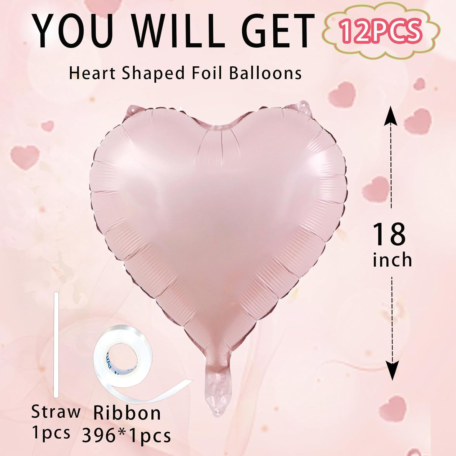- Heart-Shaped Foil Balloons:The package includes 12Pcs light pink balloons measuring 18 inches, 1Pcs white ribbon 393 inches long, 1Pcs straw, which can help you decorate the party better.