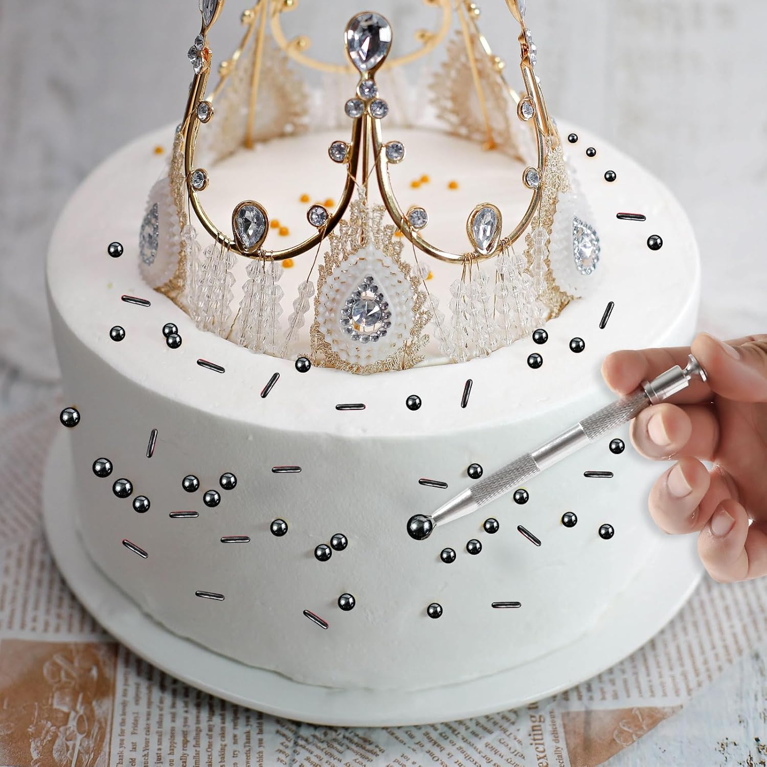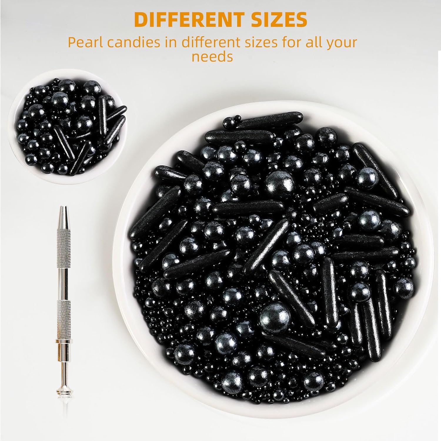 - 【Excellent Material】: Black sprinkles for cake decorating are made of food-grade safe ingredients, you can eat them with confidence. It can be eaten by men, women, old and young. The 4-claw pick up tool is made of stainless steel material, durable and retractable, it allows you to clamp and place pearl sugar smoothly.