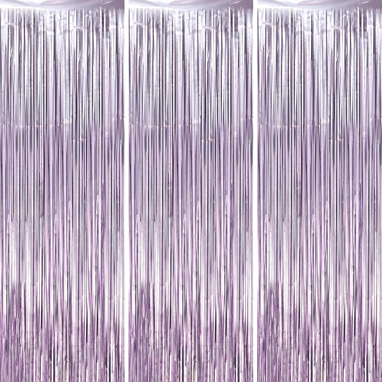3 Pack 3.3 x 8.2 ft Light Purple Foil Fringe Backdrop Curtains, Tinsel Streamers Party Decorations, Fringe Backdrop, Door Shimmer for Baby Shower or Birthday Party