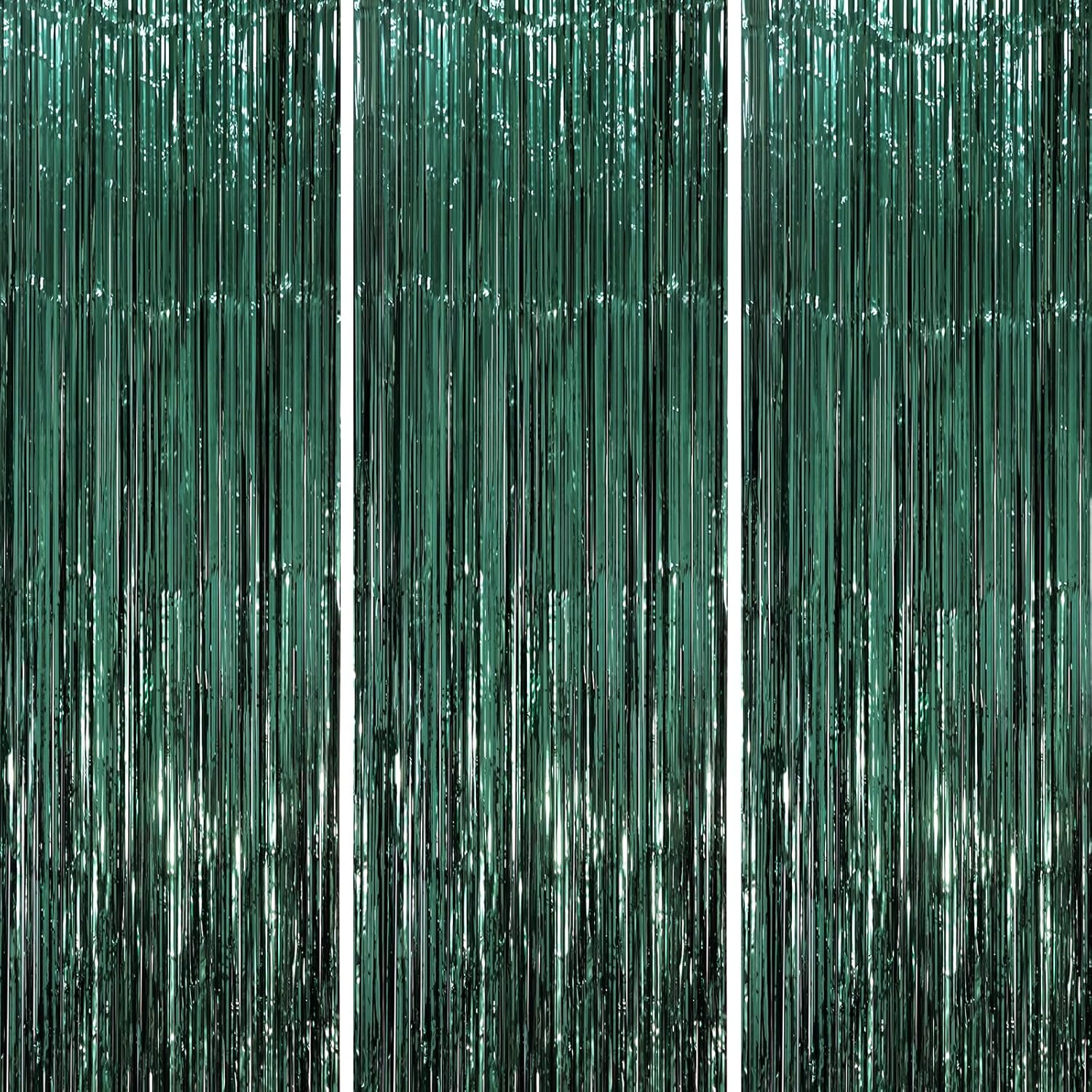 3 Pack 3.3 x 8.2 ft Retro Green Foil Fringe Backdrop Curtains, Tinsel Streamers Party Decorations, Fringe Backdrop, Door Shimmer for Christmas