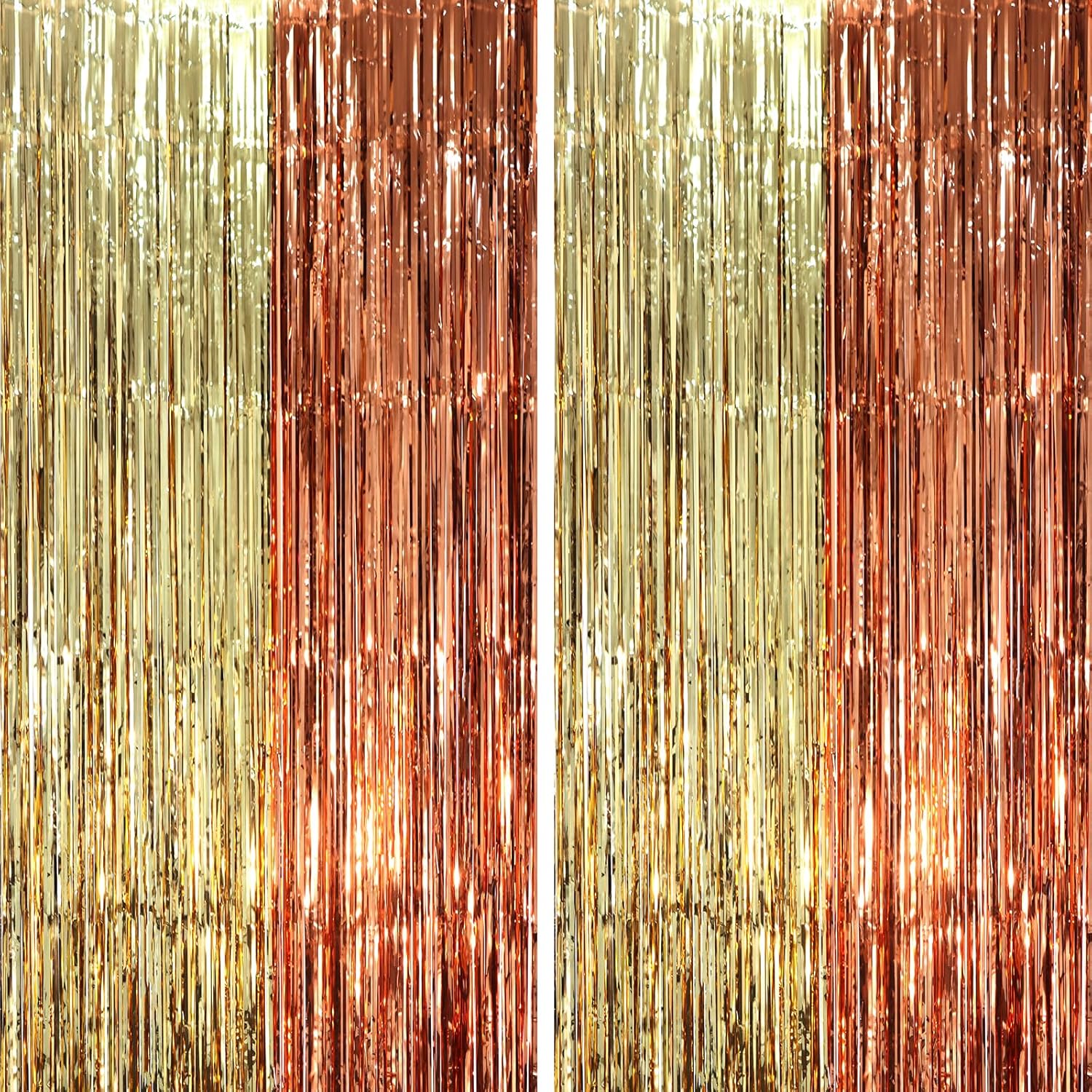 - Stunning Decorative Set: You'll receive 2pcs rose gold and champion foil fringe backdrop curtains, each measuring 3.28 ft (wide)ร6.56 ft (drop). Enough length foil fringe curtains backdrops are perfect for the door or wall to create an impressive decoration