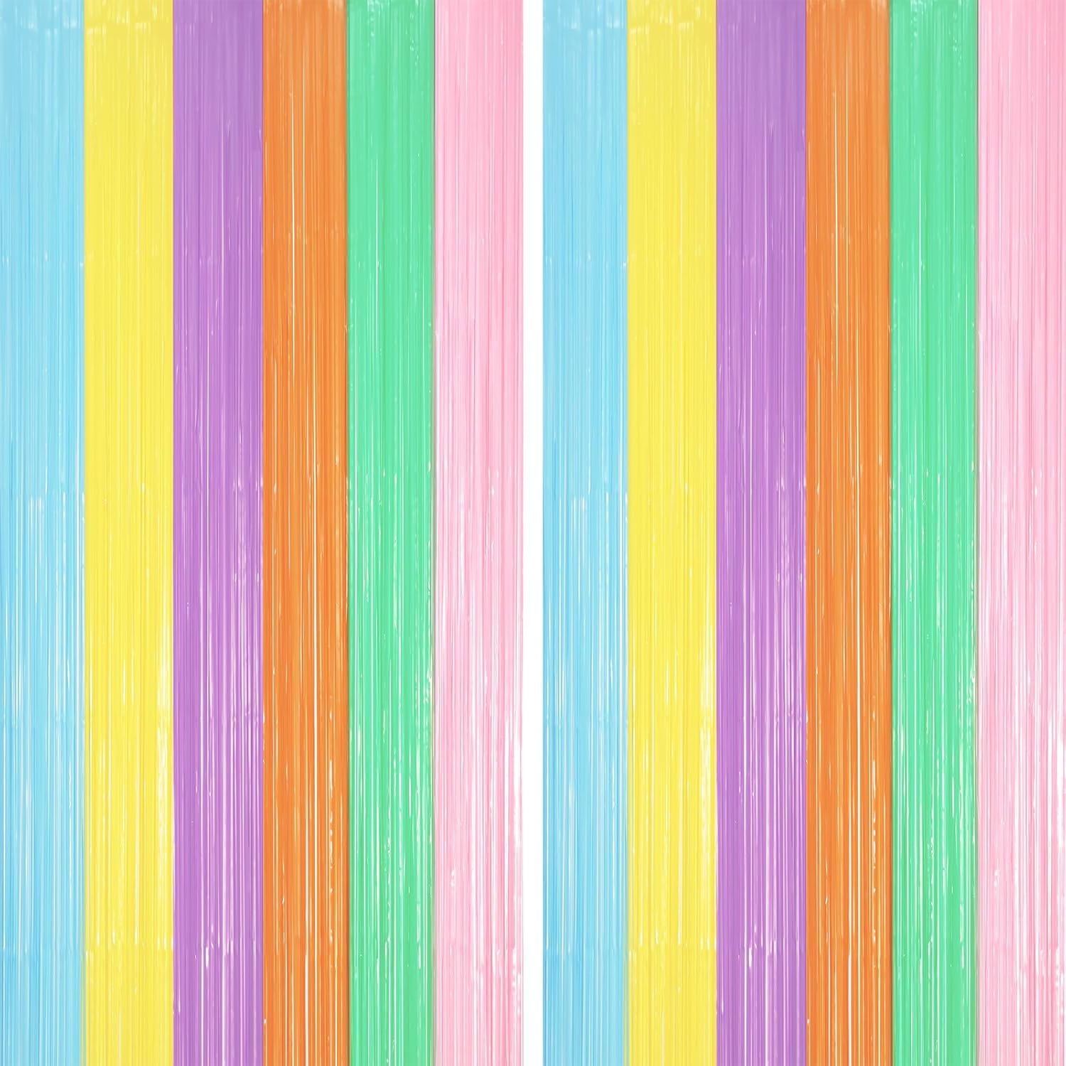 2 Pack Pastel Rainbow Foil Fringe Backdrop Curtains, Tinsel Streamers Party Decorations, Fringe Backdrop, Door Shimmer for Baby Shower or Birthday Party