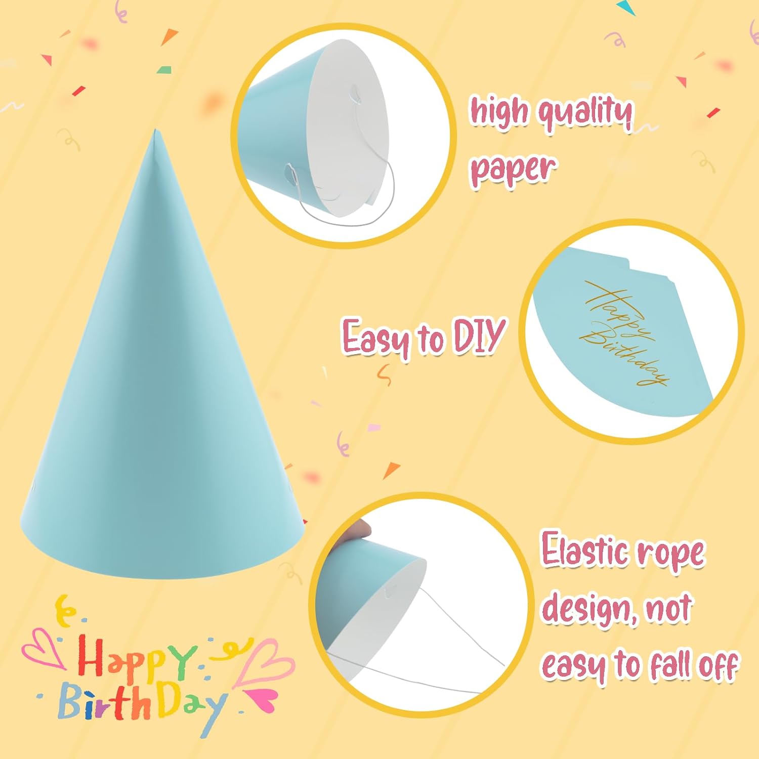 24 PCS Birthday Party Cone Hats Party Hat with Elastic String for Kids and Adults Birthday, Baby Shower, Bridal Shower