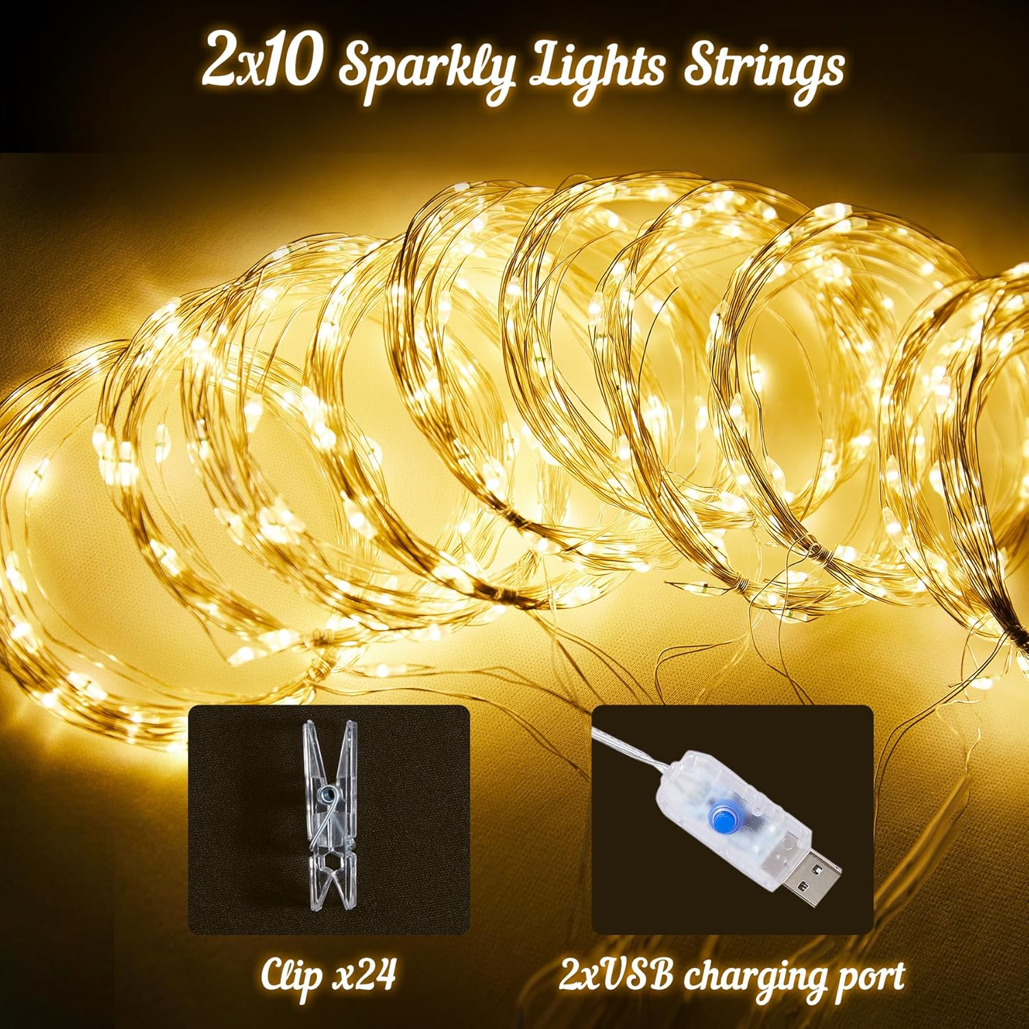 - Backdrop Curtains with Lights: Each set includes 4 pieces of 5x8ft blue sheer tulle backdrop curtains, 2 sets of 10 ft warm white LED string lights, and 24 clips. These sheer curtains with lights are perfect for baby shower photo booths or wedding reception backdrops, bringing a romantic and charming atmosphere to evening events