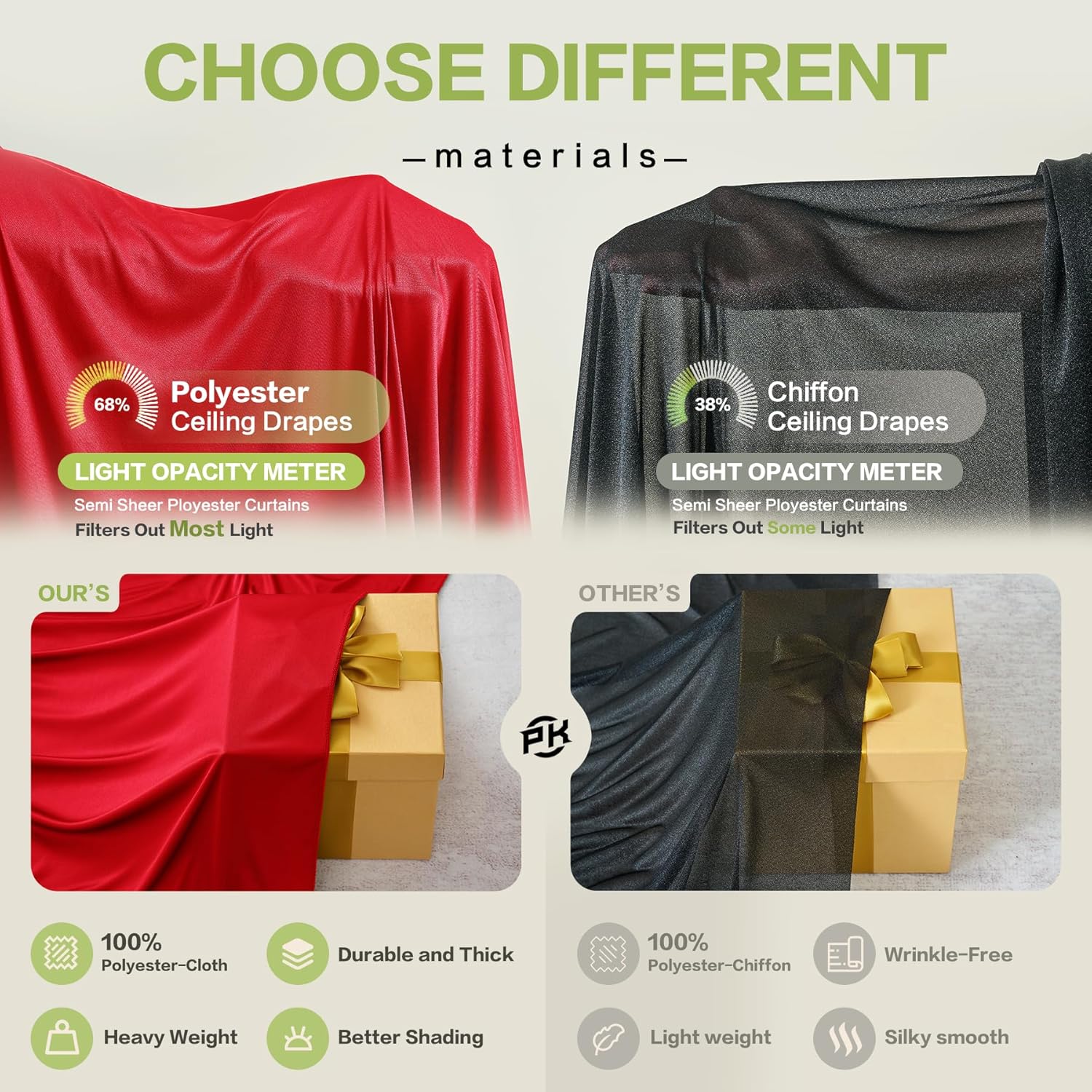 - 40ft Extra Long Ceiling Drapes: 2 Panels 5ftx40ft Red Backdrop Curtains for Parties. Totally 10FT(Width) x 40FT(Height). cortinas para fiestas decoracion.