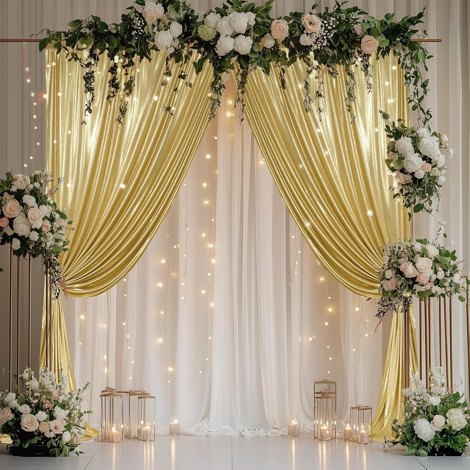 - For Kinds of Occasions: Our 10ft gold sequin glitter polyester drapes are perfect for kinds of occassions. Such as wedding party, baby showers, birthday parties, photo booth,anniversary,graduation, home decoration and more.