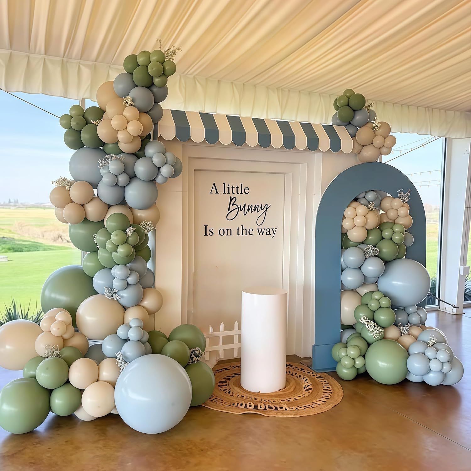 Sage Green and Blue Balloons, 35PCS Olive Green Dusty Blue Beige Cream Latex Balloon, Baby Boy Shower Balloons for Kids Rabbit Theme Baby Shower Birthday Boho Bridal Wedding Party Decorations Supplies