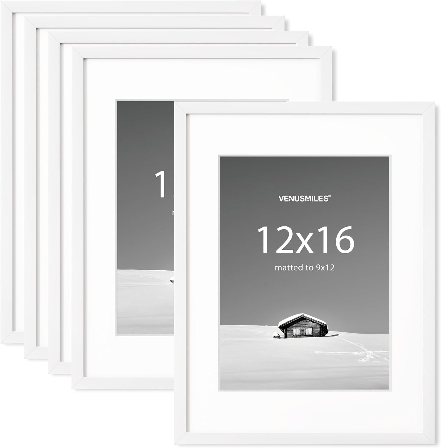 12x16 inch Picture Frame, 12x16 Photo Frames with 8.5x11 Removable Mat - High Definition Plexiglass - Vertical and Horizontal Display - Wall Hanging Frame - White, 5 Pack