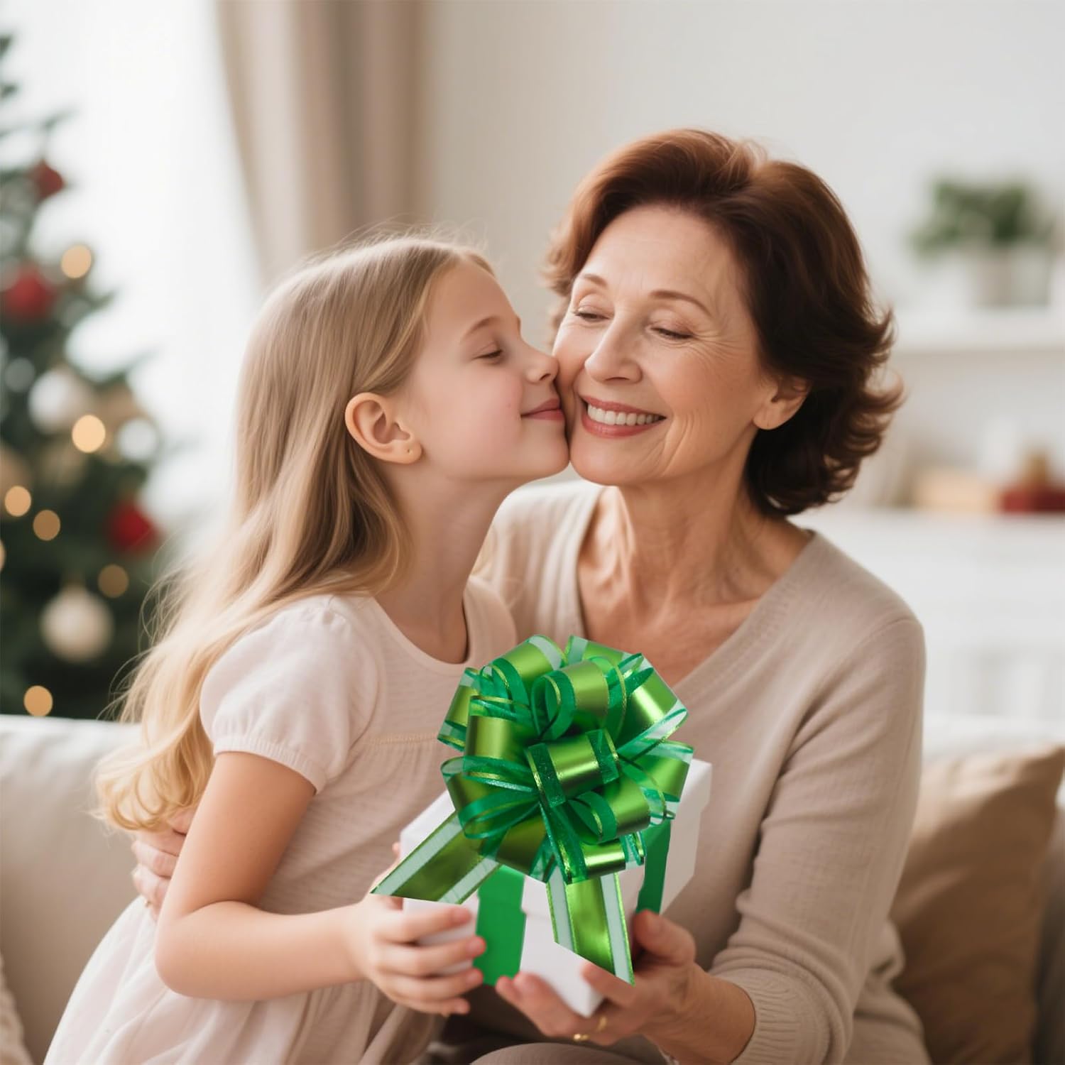 6 PCS 6 Inch Organza Green Pull Bows - Perfect for Gift Wrapping, Wedding Decor, Car Bows, Birthday Parties, Christmas, and Valentine's Day