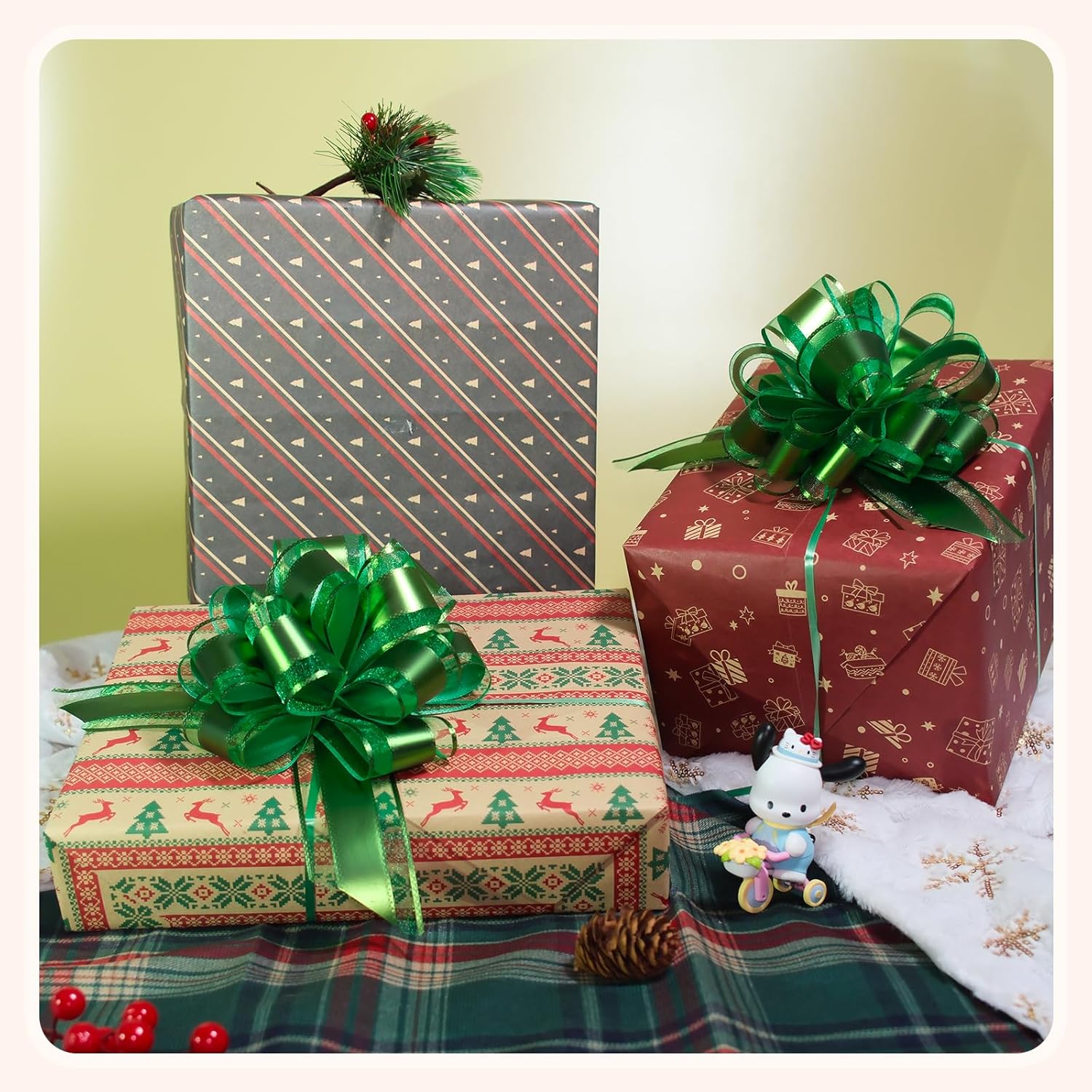 - Packaging: Each pack comes with 6 drawstring bows , you can tie the cute bows almost anywhere you want to decorate, or just stick them on with double sided tape.