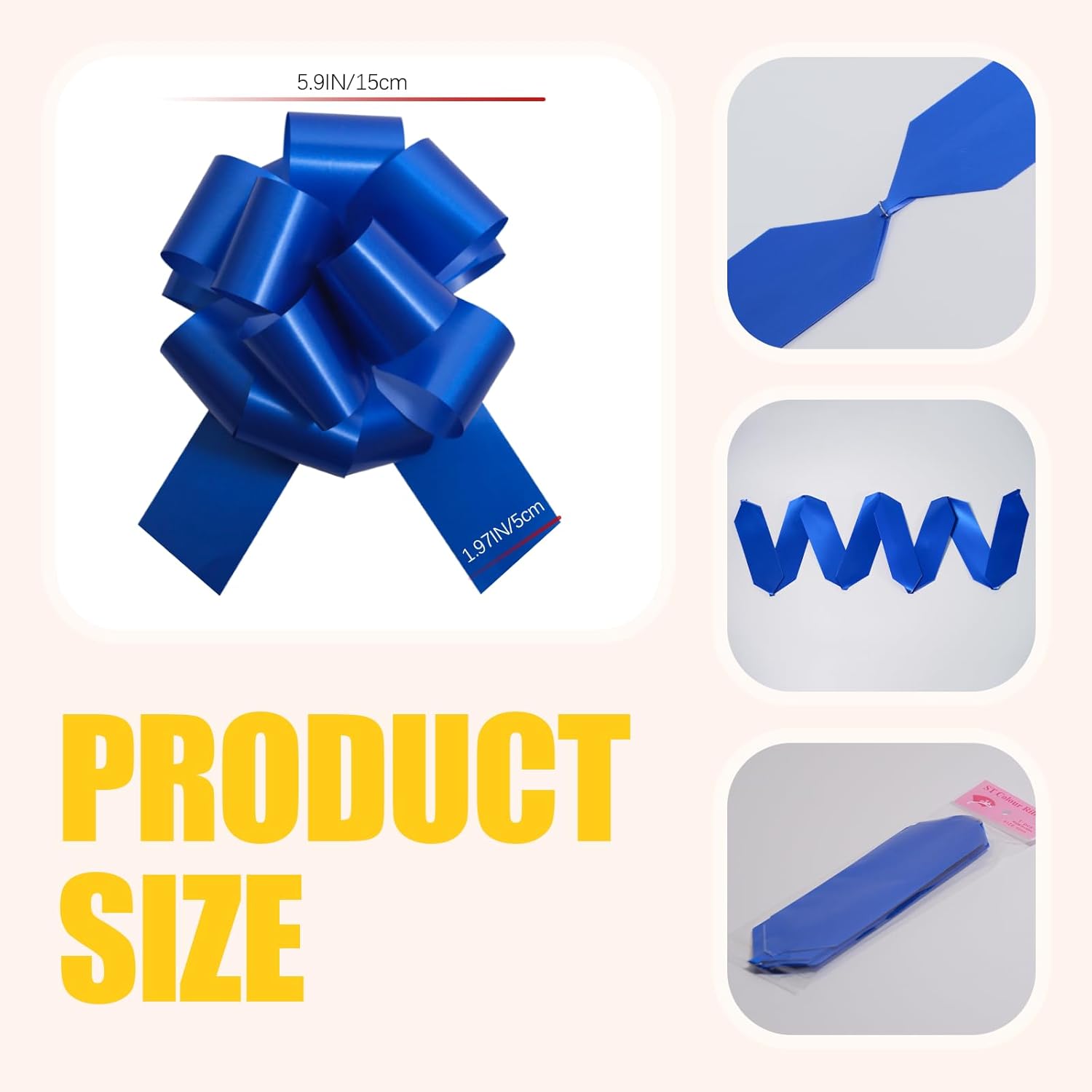 6 PCS 6 Inch Blue Pull Bows - Perfect for Gift Wrapping, Wedding Decor, Car Bows, Birthday Parties, Christmas and Valentine's Day