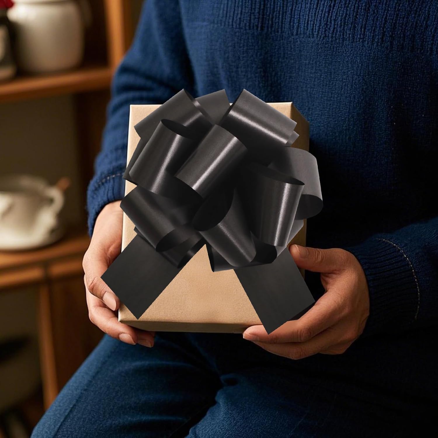 6 PCS 6 Inch Black Pull Bows - Perfect for Gift Wrapping, Wedding Decor, Car Bows, Birthday Parties, Christmas and Valentine's Day