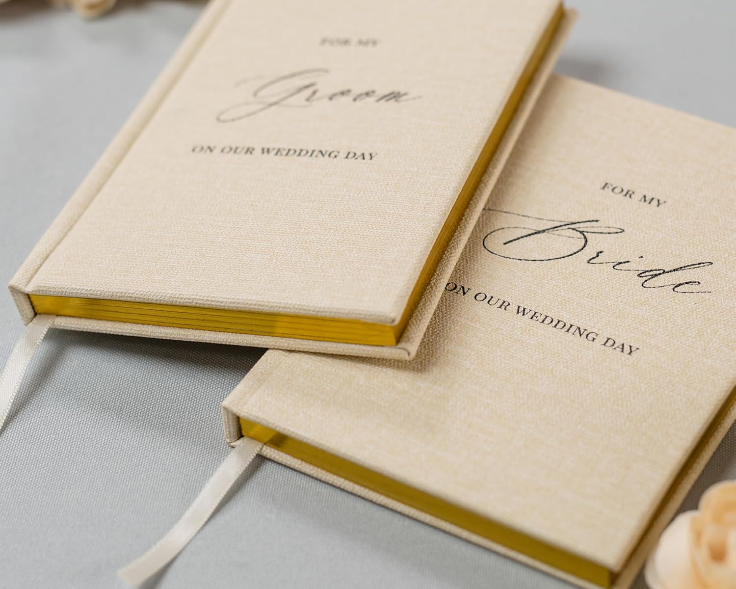- Each vow book is meticulously crafted with 140 gsm paper, ensuring durability and a luxurious feel. Each book contains 80 lined pages with gold gilded edges, adding a touch of elegance to your wedding day prop or bridal shower gift.