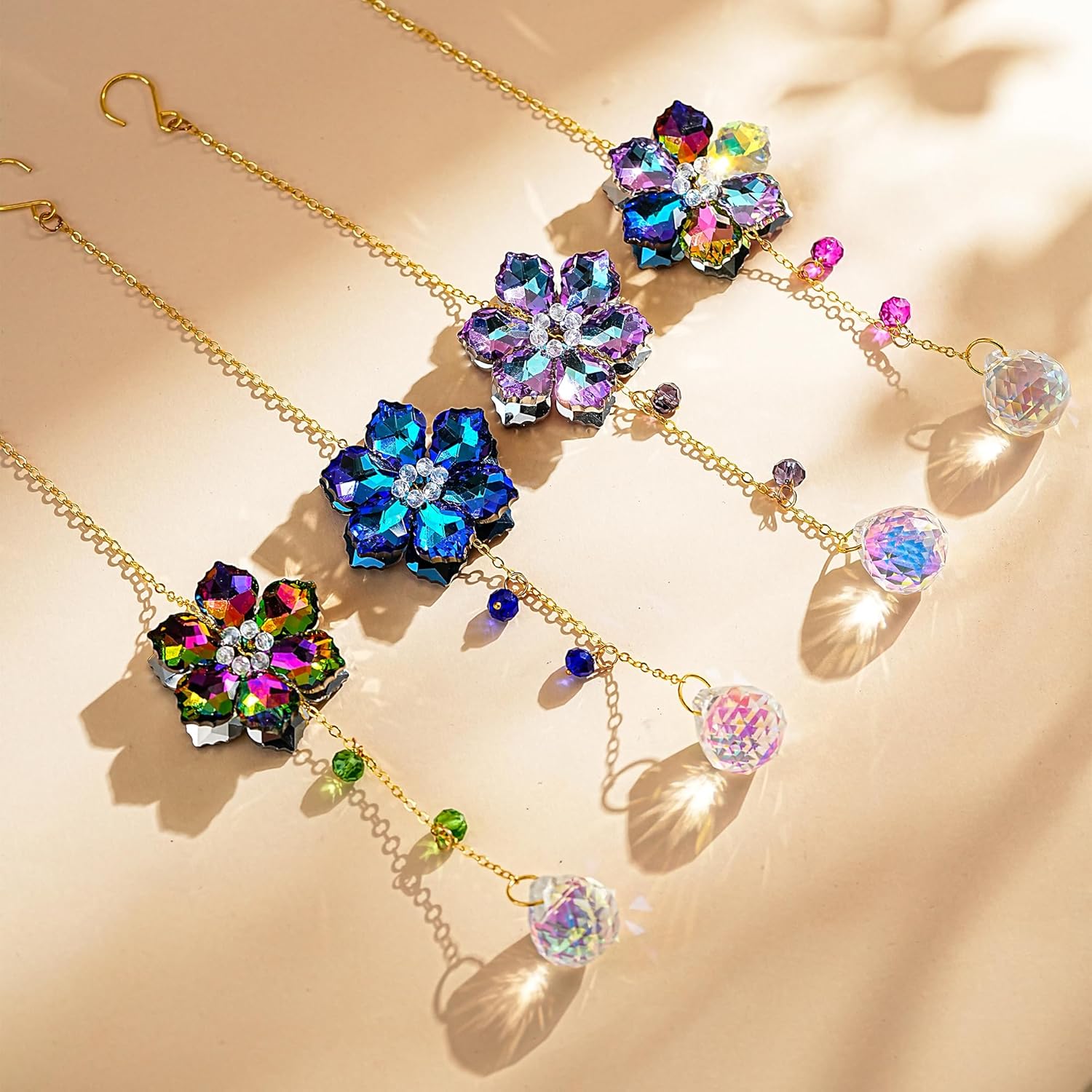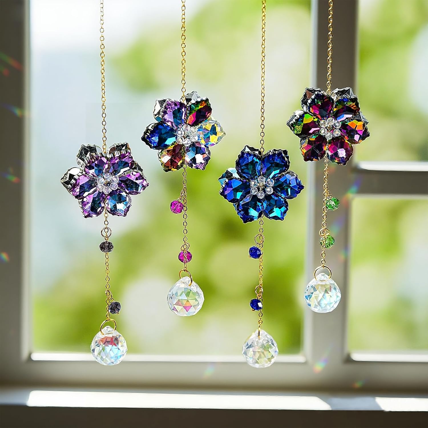 - Crystal Flower Suncatcher (4-Pack): Four colorful crystal flowers catch the sun, filling your space with vibrant rainbows