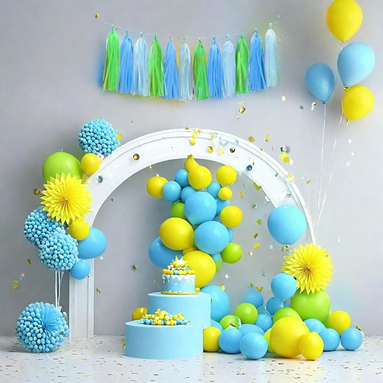 - Color : Blue Light Blue and Green Tassel Garland Banner