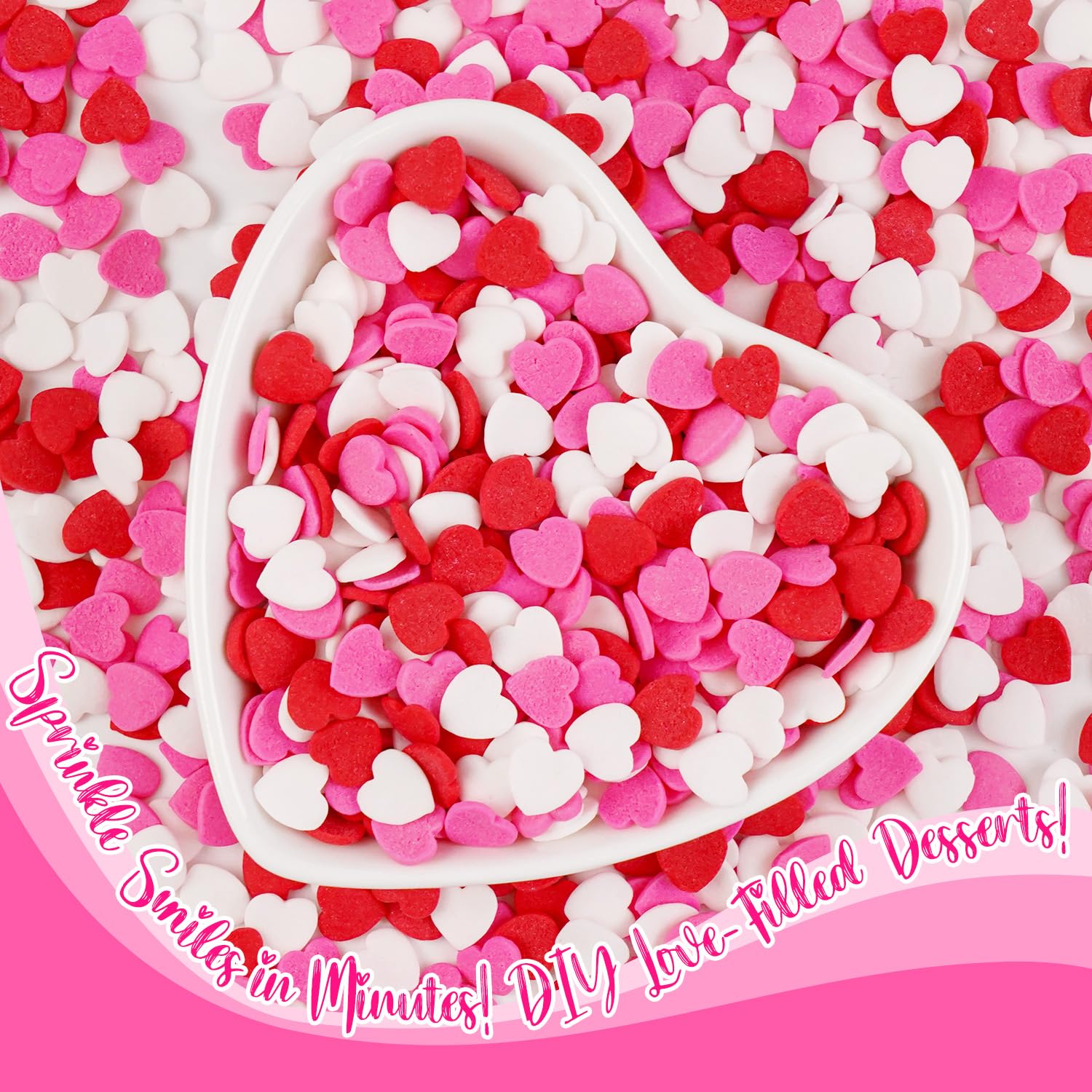 Heart Sprinkles For Cake Decorating, Red Pink and White Edible Mix Baking Candy, 150g/5.29oz, Ice cream, Cupcake Topper, Cookie, Mother's Day, Birthday, Valentine's Day, Wedding Party Supplies