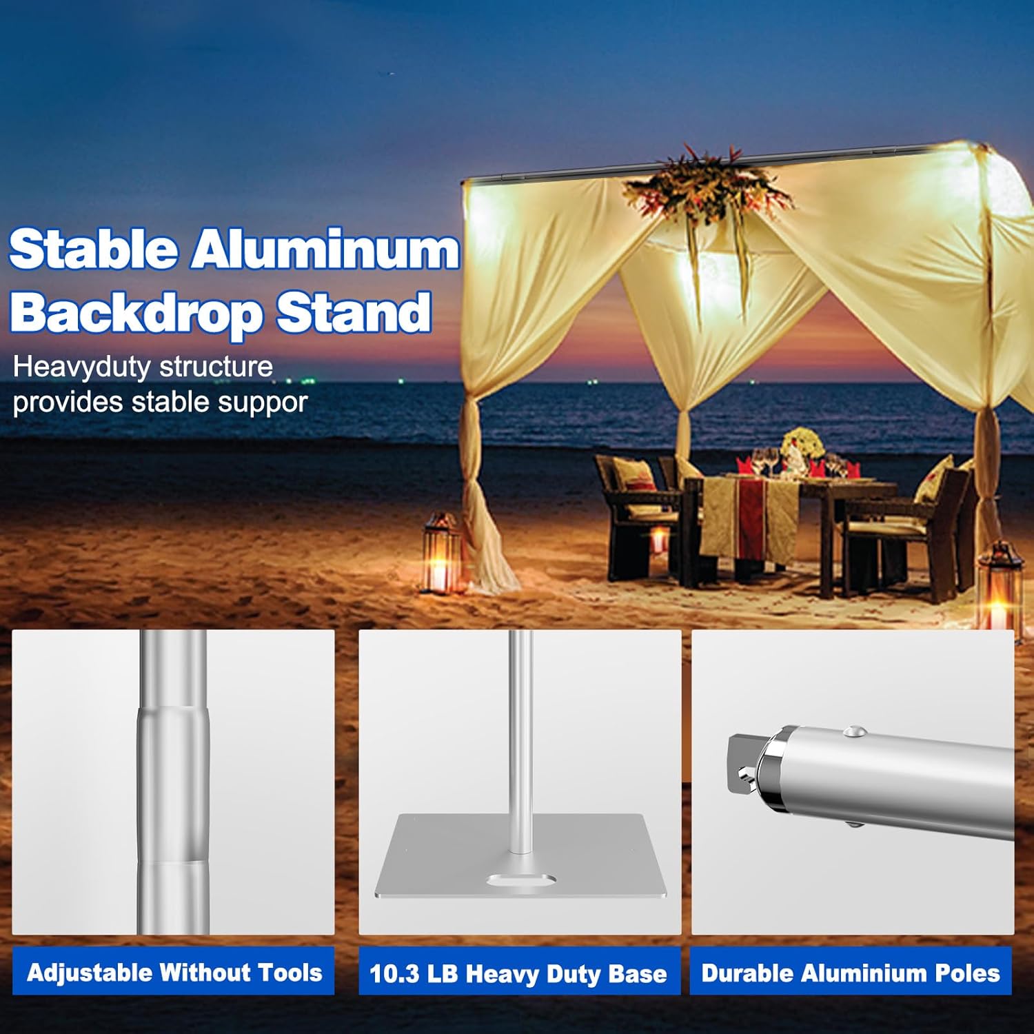 - Sturdy Construction: Made from heavy-duty metal for long-lasting durability and stability, even with heavier backdrops.