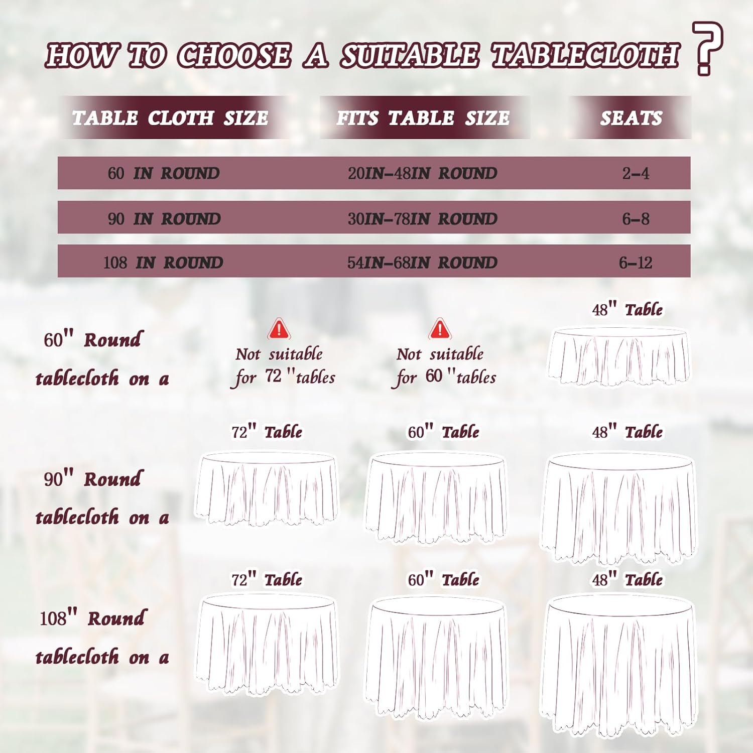 - Widely used scenarios: Round table cloth is suitable for wedding parties, dances, banquet events, birthday parties, restaurant tables, graduation parties, and daily dining tables. It can also be used as decorations for Halloween, Christmas, and Valentine's Day.