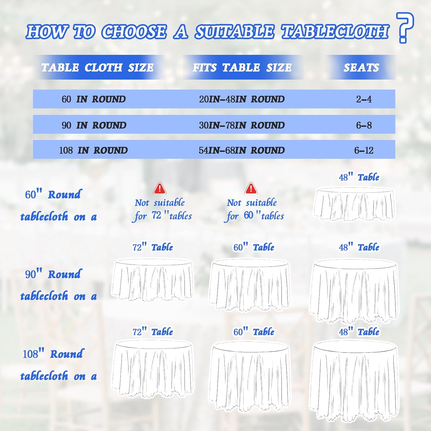 - Easy to maintain: Round table cover can be machine washed and hand washed, making them easy to clean and dry. After cleaning, dry at low temperature, preferably iron to maintain cleanliness, easy to maintain and sufficiently fluffy, with a beautiful appearance.