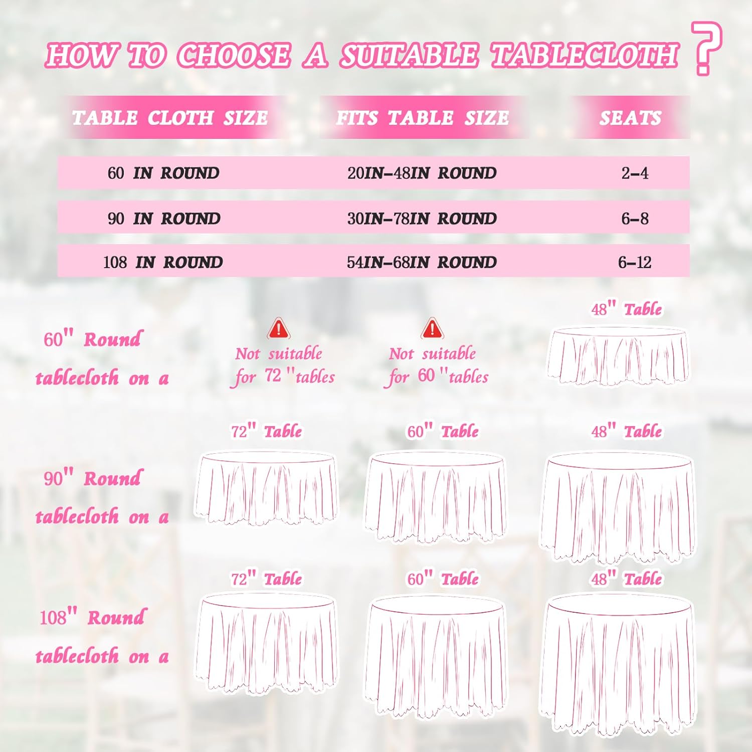 - Widely used scenarios: Round table cloth is suitable for wedding parties, dances, banquet events, birthday parties, restaurant tables, graduation parties, and daily dining tables. It can also be used as decorations for Halloween, Christmas, and Valentine's Day.