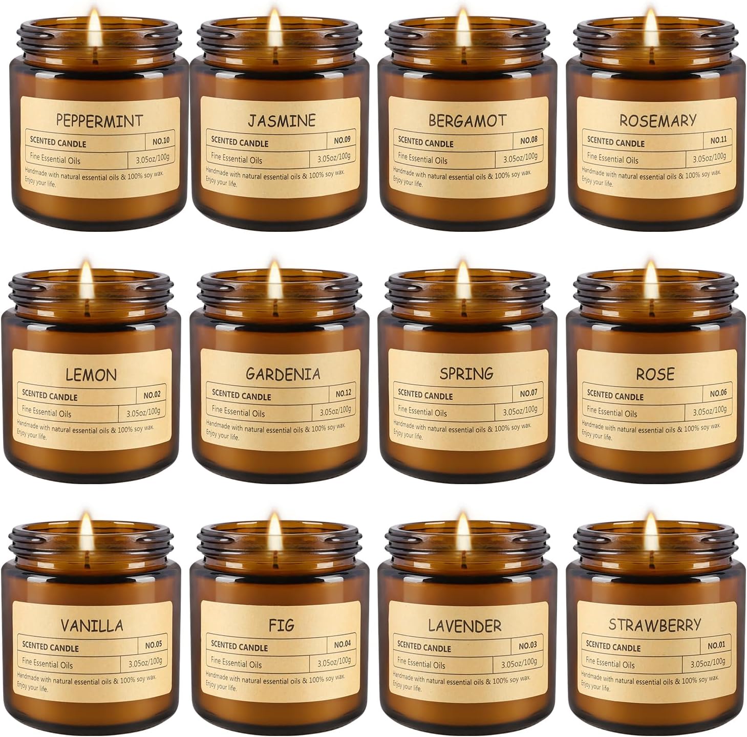 - Variety of Scents:This 12-pack scented candle set offers a variety of scents such as lemon, jasmine, and white pine, satisfying your different needs for aroma.