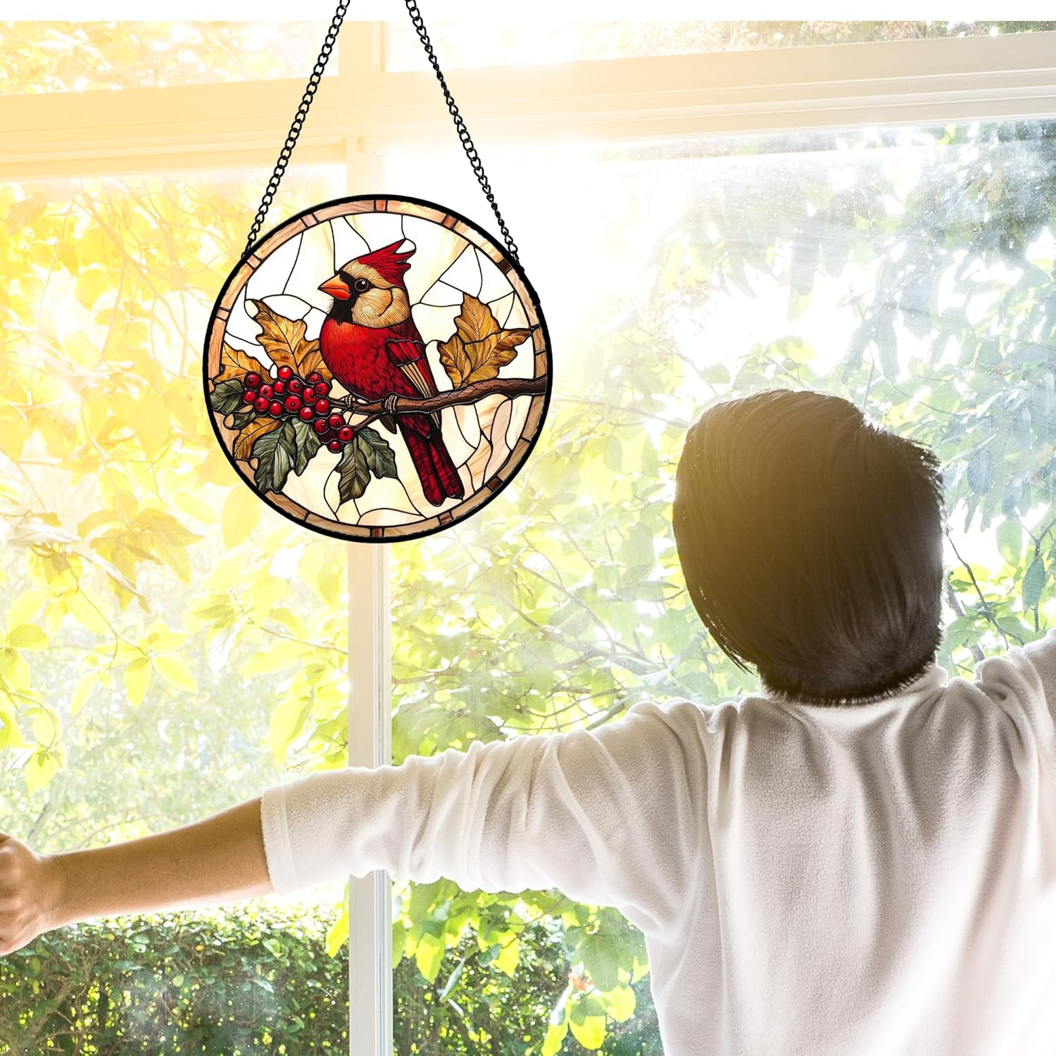 - Sun Catchers Indoor Window : This stain glass window hanging captivates with its vibrant and rich tones. Stain glass window hanging has a double-sided light transmission, it come to life when illuminated by natural light, infusing your home with happiness.