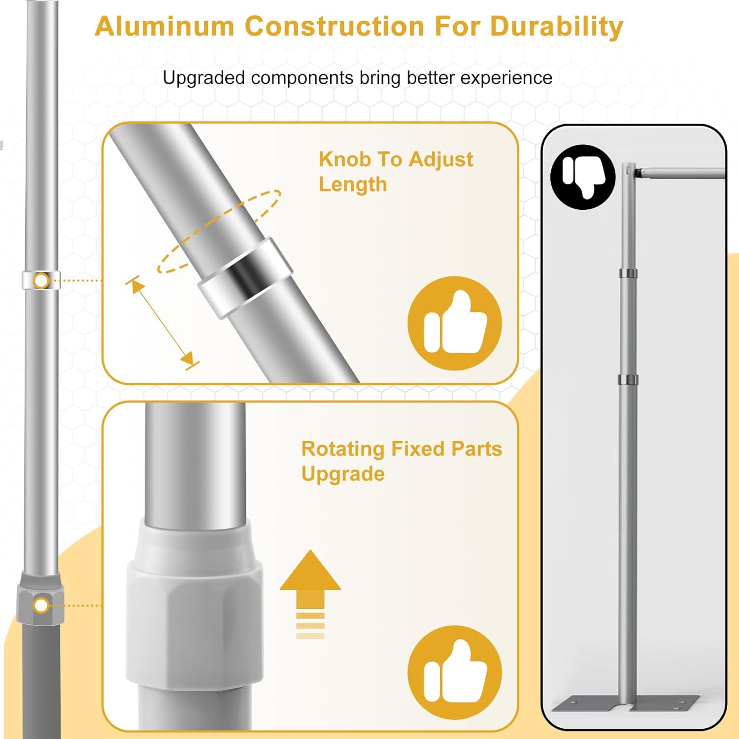 - 【Wide Application】This backdrop poles is perfectly suitable for parties, weddings, birthday, baby shower, photography, photo booths, banner stand backgrounds, business events and so on. Photography backdrop stand can hang drapes, balloons, string lights and flowers to make your backdrop stand heavy duty amazing