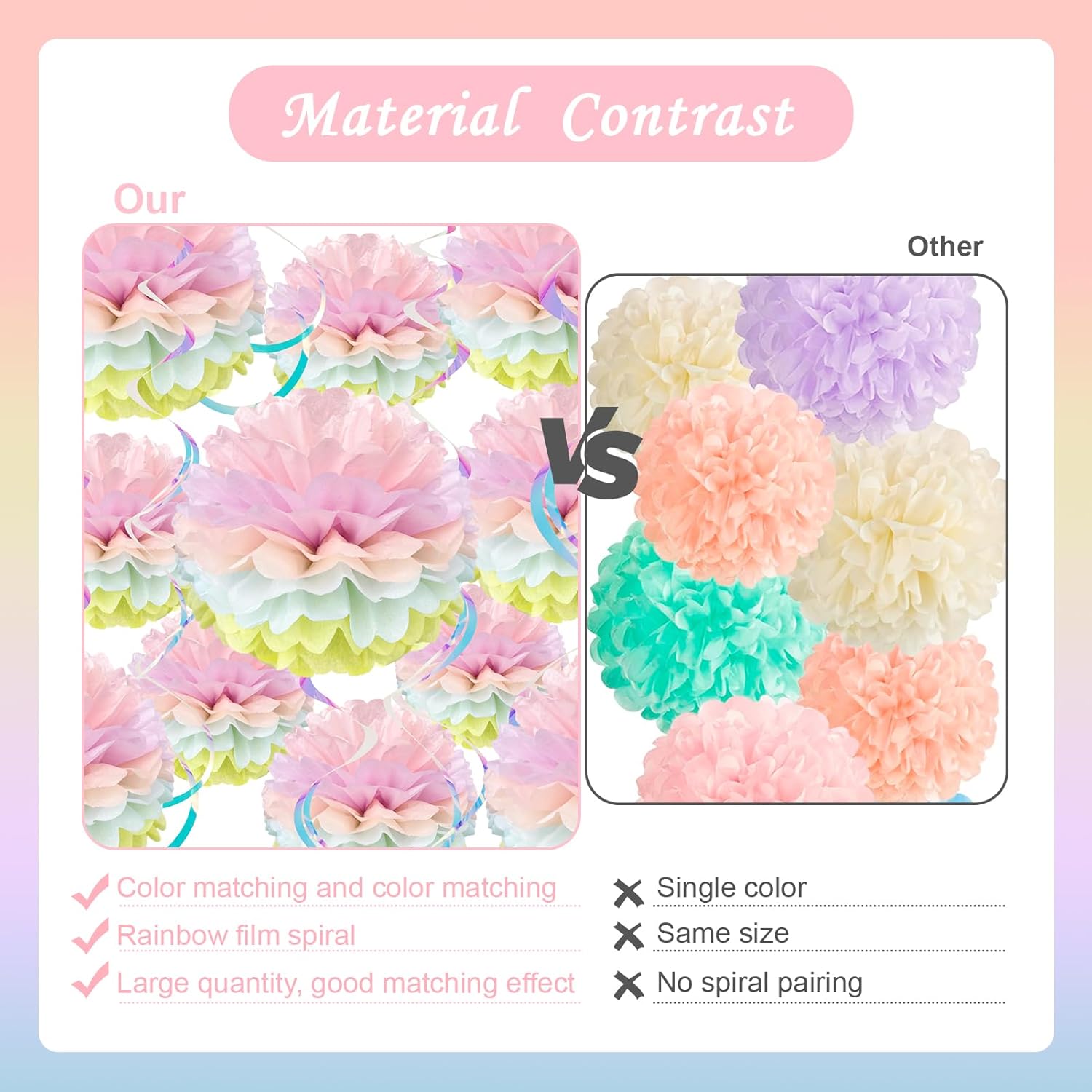 - Ideal for Various Celebrations and Themed Parties - These pastel paper pom poms are perfect for any girl’s birthday party, baby shower, Easter celebration, or themed event like mermaids, unicorns, or fairies. Whether you're hosting a small intimate gathering or a larger bash, these decorations add charm and character to your venue, making them a must-have for any party planner.