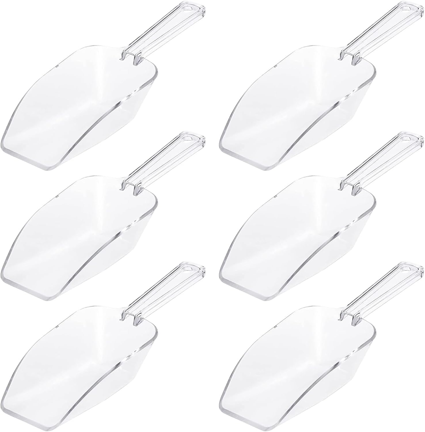 - Durable Multi-Purpose Scoops: Crafted from high-quality clear plastic, these 6Pcs ice scoops are versatile for serving ice, popcorn, snacks, cookies, candy, sugar, and dry goods. Ideal for parties, weddings, and everyday kitchen use