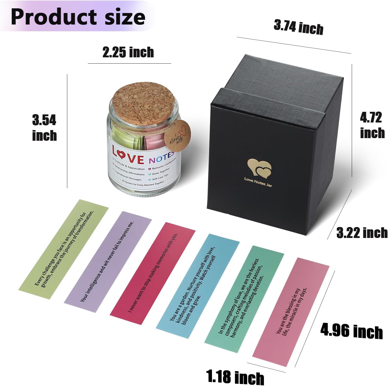 - Quality and Elegance Combined: The glass jar is made of high-quality, clear glass that showcases the colorful love notes inside. The jar is durable and well-crafted, with a smooth finish. The lid fits snugly to keep the notes safe and protected. The love notes are printed on fine paper with beautiful fonts, adding an element of elegance. We ensure that this product not only conveys love but also exudes quality and style