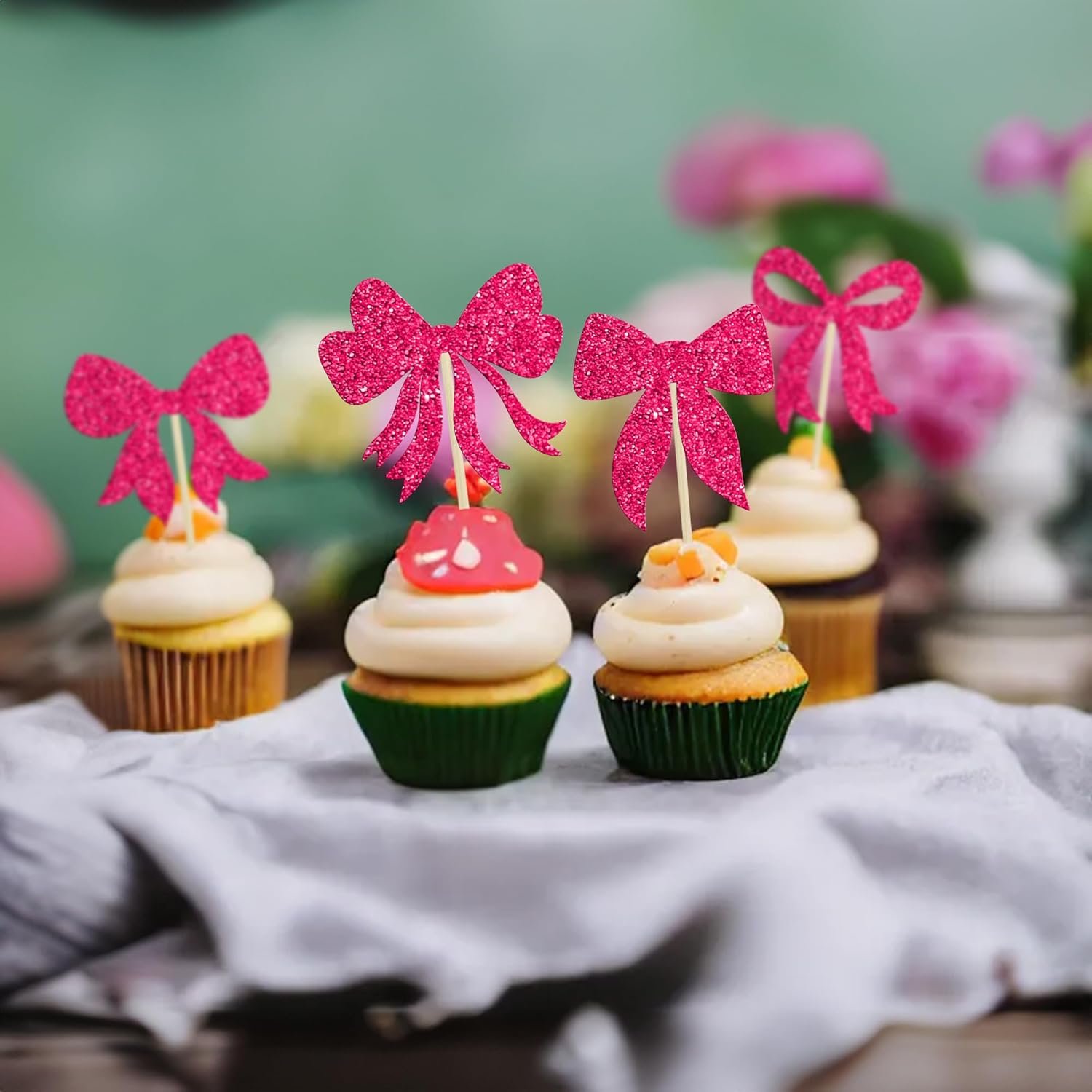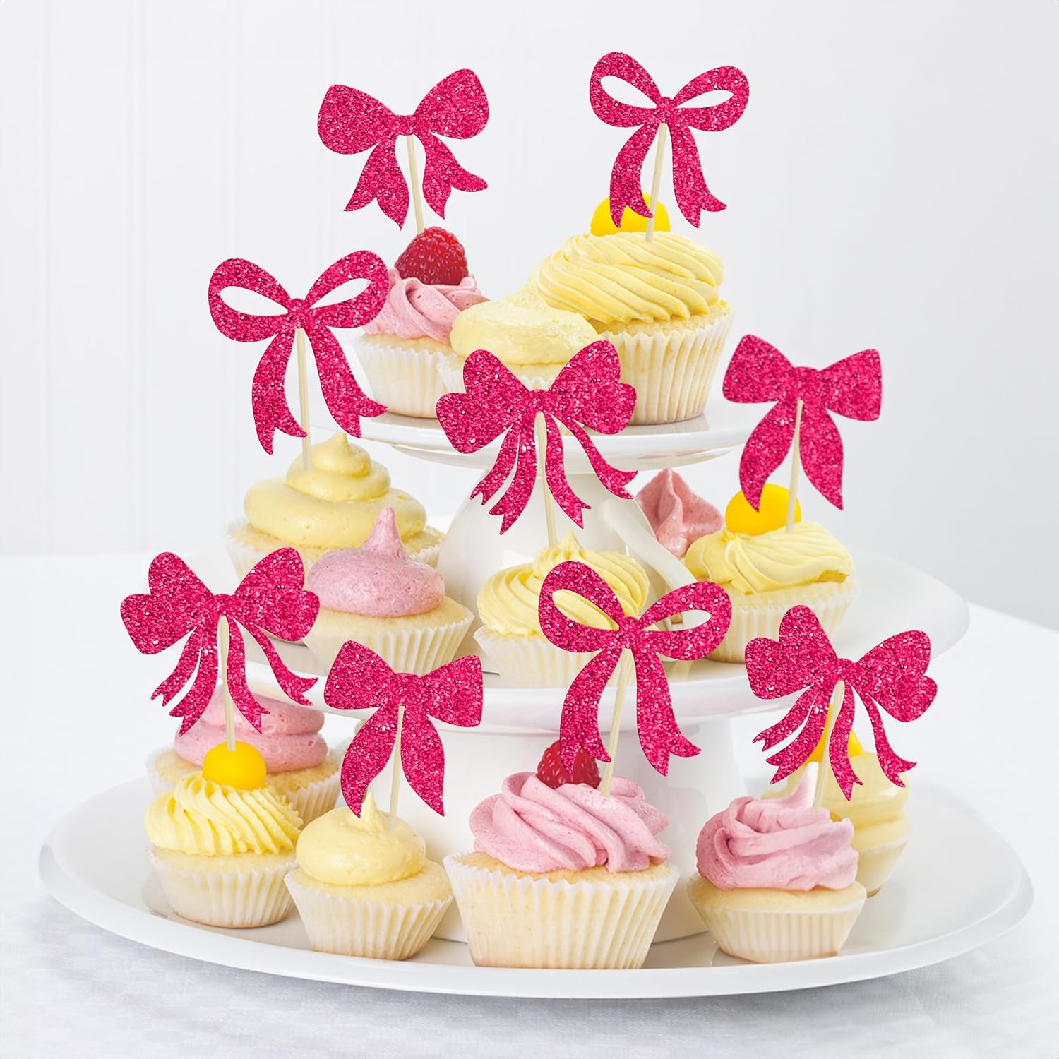 - --Premium Material: These Bow Dots Cupcake Toppers are made of high quality 300 gram glitter card stock and food-grade toothpick, very safe to put them on cakes, cupcakes, ice cream, fruits, pie, dessert, cheese or any dish and food appetizer you want to decorate birthday party decorations.