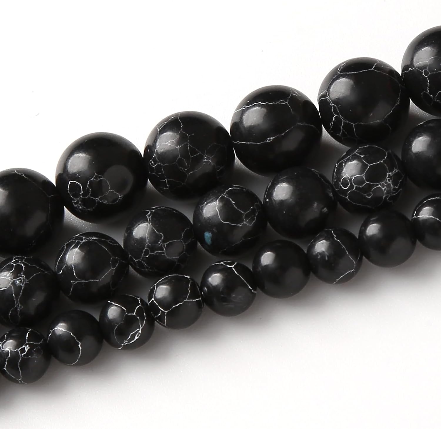 Black Turquoise Stone Beads Gemstone Round Crystal Energy Jade Beads Stone Beads for Jewelry Making DIY Bracelet Necklace Jewelry Making 1 Strand 15.5inch 4MM