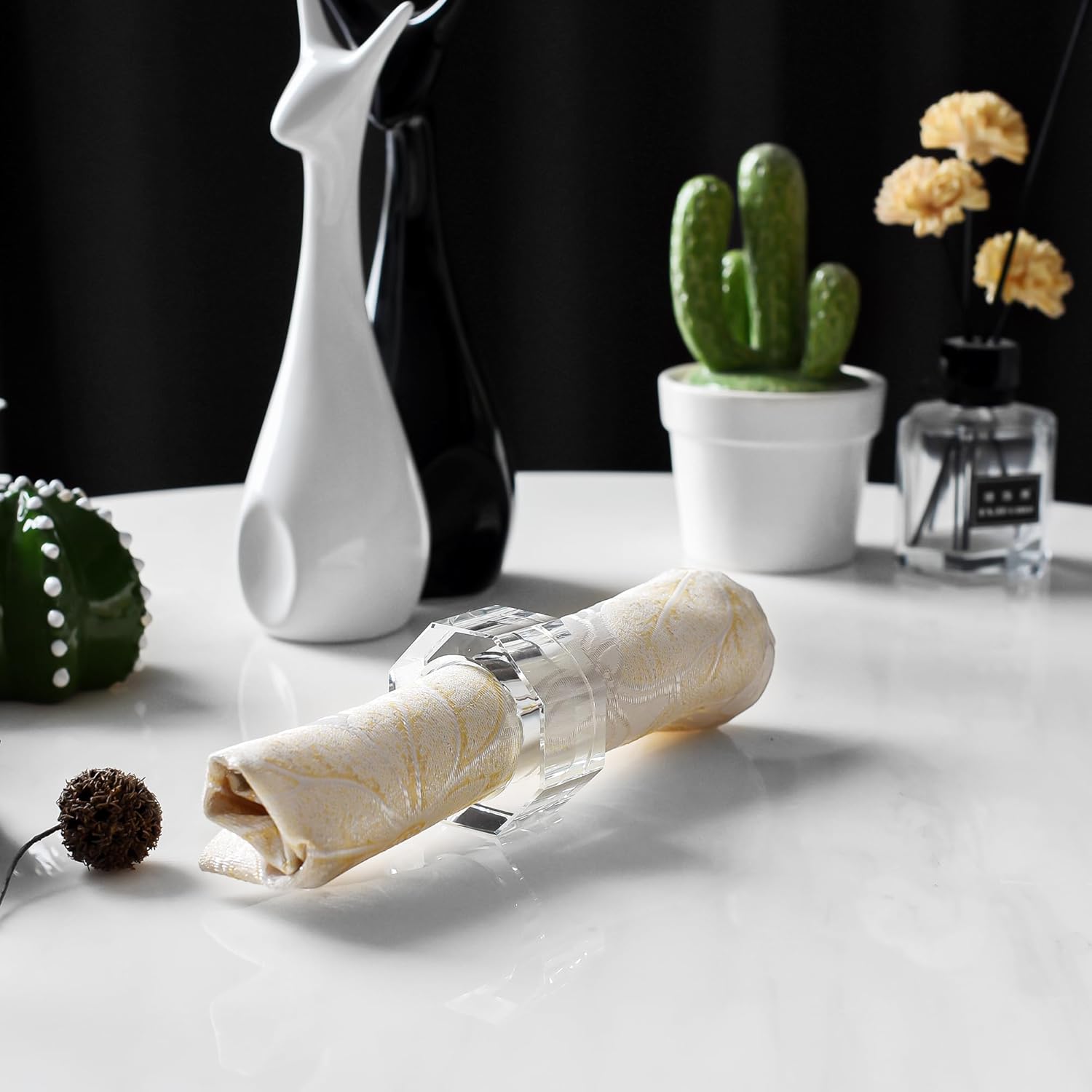 - PREMIUM QUALITY: Made of high-quality crystal, our napkin rings are heavy-duty, simple, durable and Re-usable, which you can set your dining table in style with these attractive napkin rings.