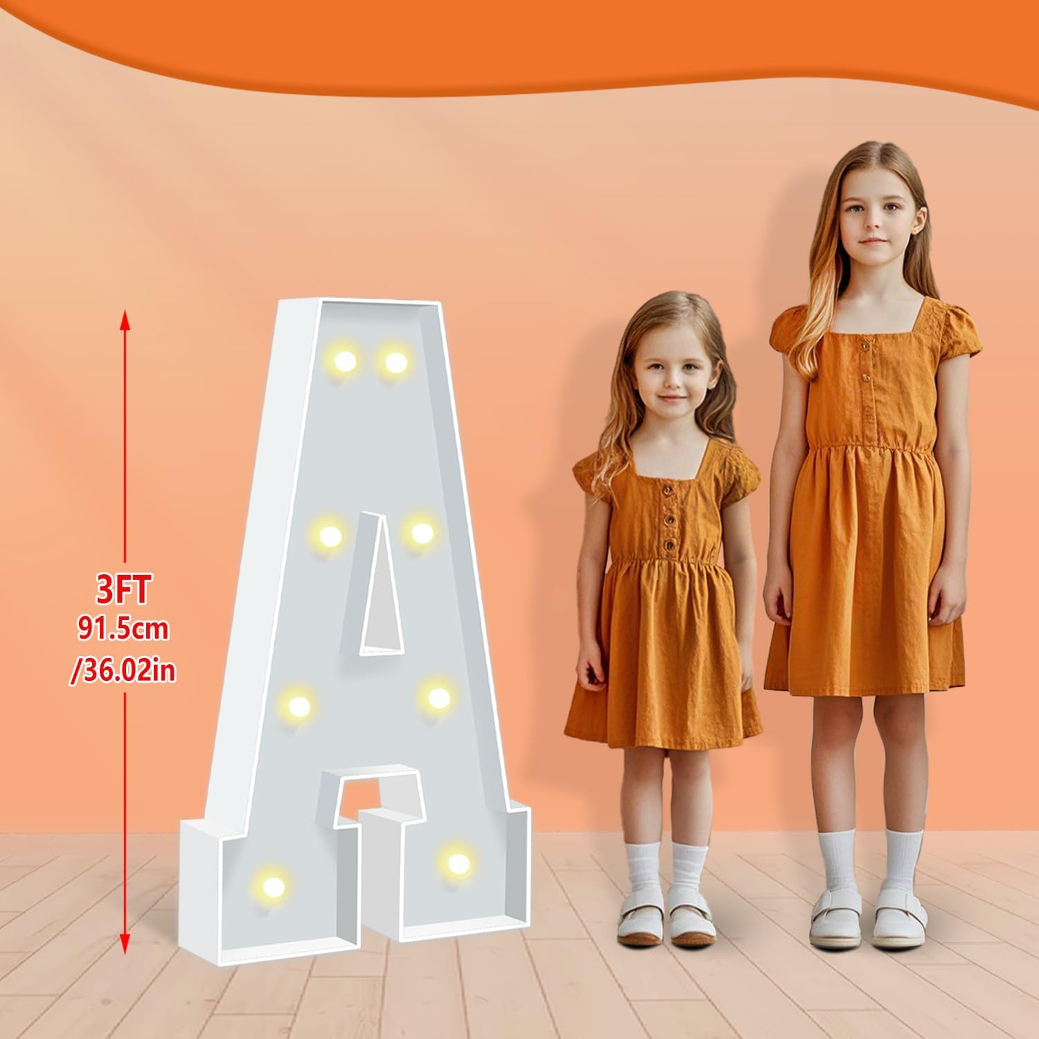 3FT Marquee Light Up Letters, LED Marquee Letters A for Birthday Balloons Backdrop, Large Light Up Letters for Baby Shower Anniversary Decorations Party Wedding Decor, Pre-Cut Foam Frame Kit