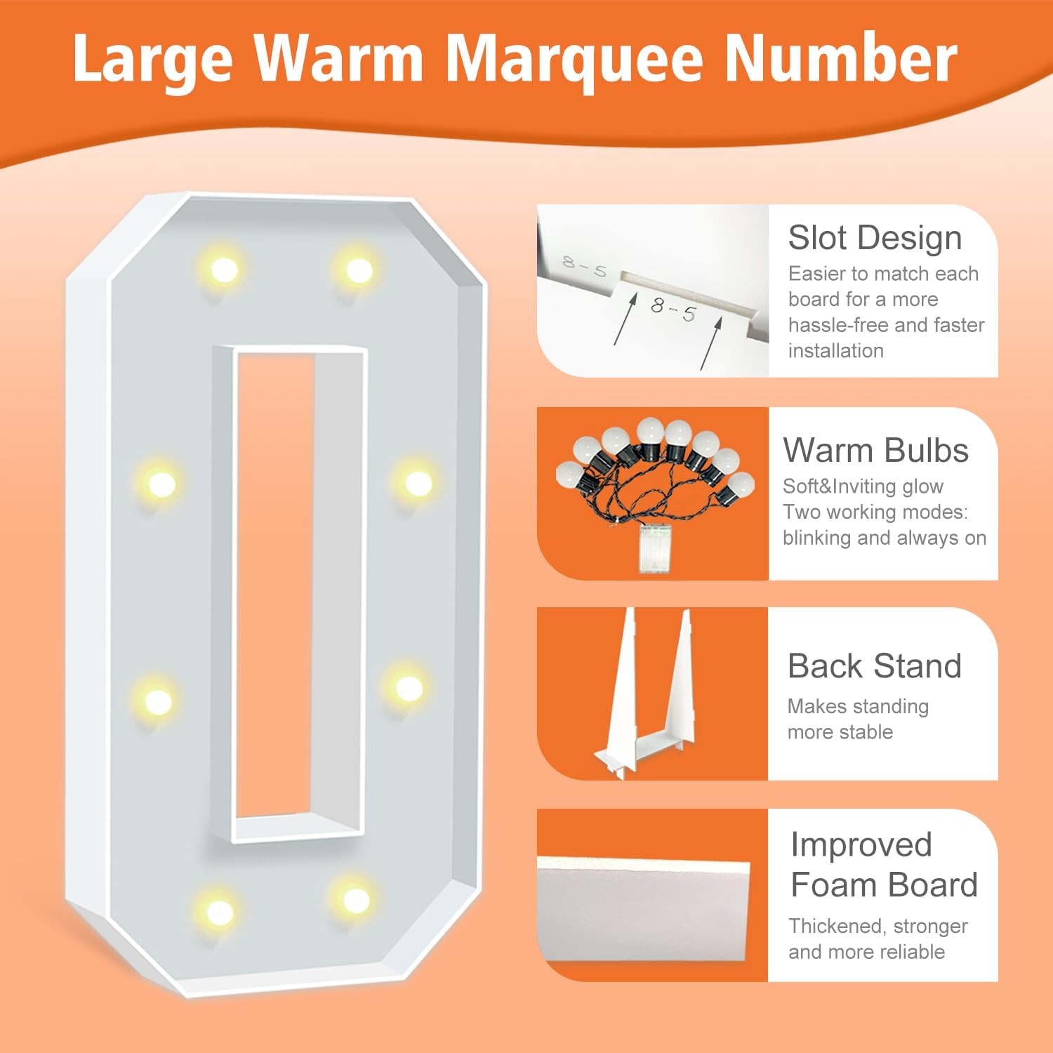 - IMPROVED FOAM BOARDS: Our marquee letters are made from high-density thickened foam boards, the slots and connectors can be tightly linked togethe for better stability. Each letter has a sturdy back stand to ensure that your party marquee sign will not tip over. (Tips: When outdoors, please place something heavy on the back stand to prevent the letter sign from blowing over).