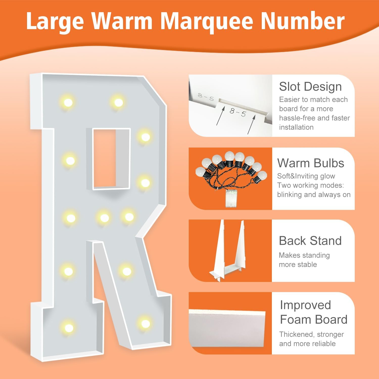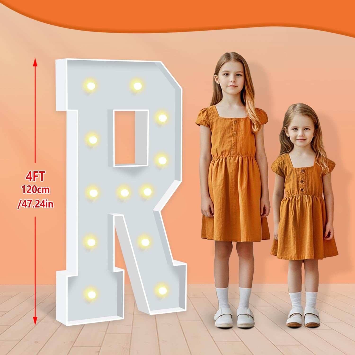 4FT Marquee Letters R, Large Marquee Light Up Letters, Mosaic Balloon Frame Letter for Engagement Wedding Decorations Birthday Party Backdrop Decor, Balloon Arch Kit