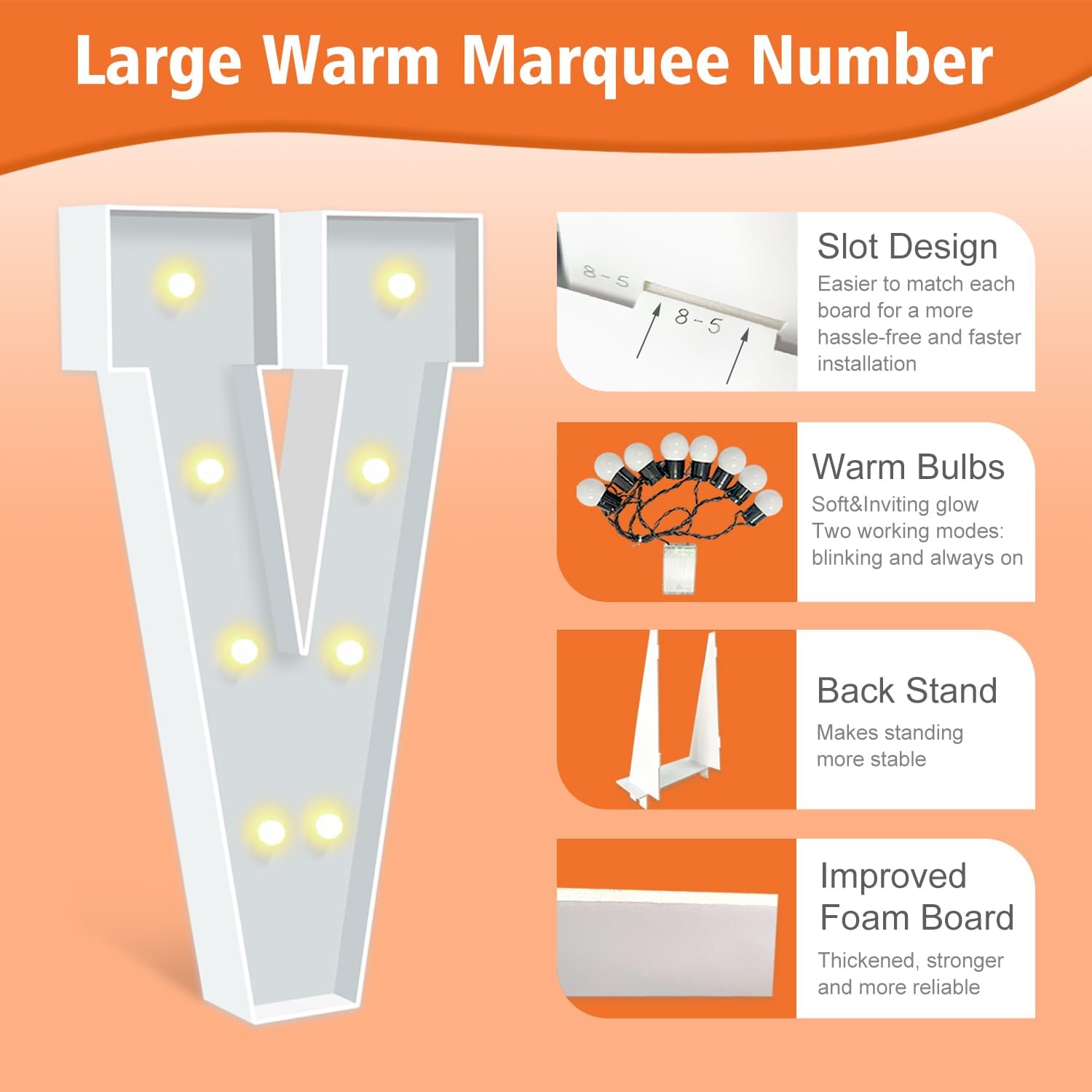 3FT Marquee Letters, Mosaic Large Letters V for Birthday Party, Light Up Letter for Wedding Backdrop Decoration Anniversary Baby Shower Day Decor, Pre-Cut Big Foam Board Frame Kit