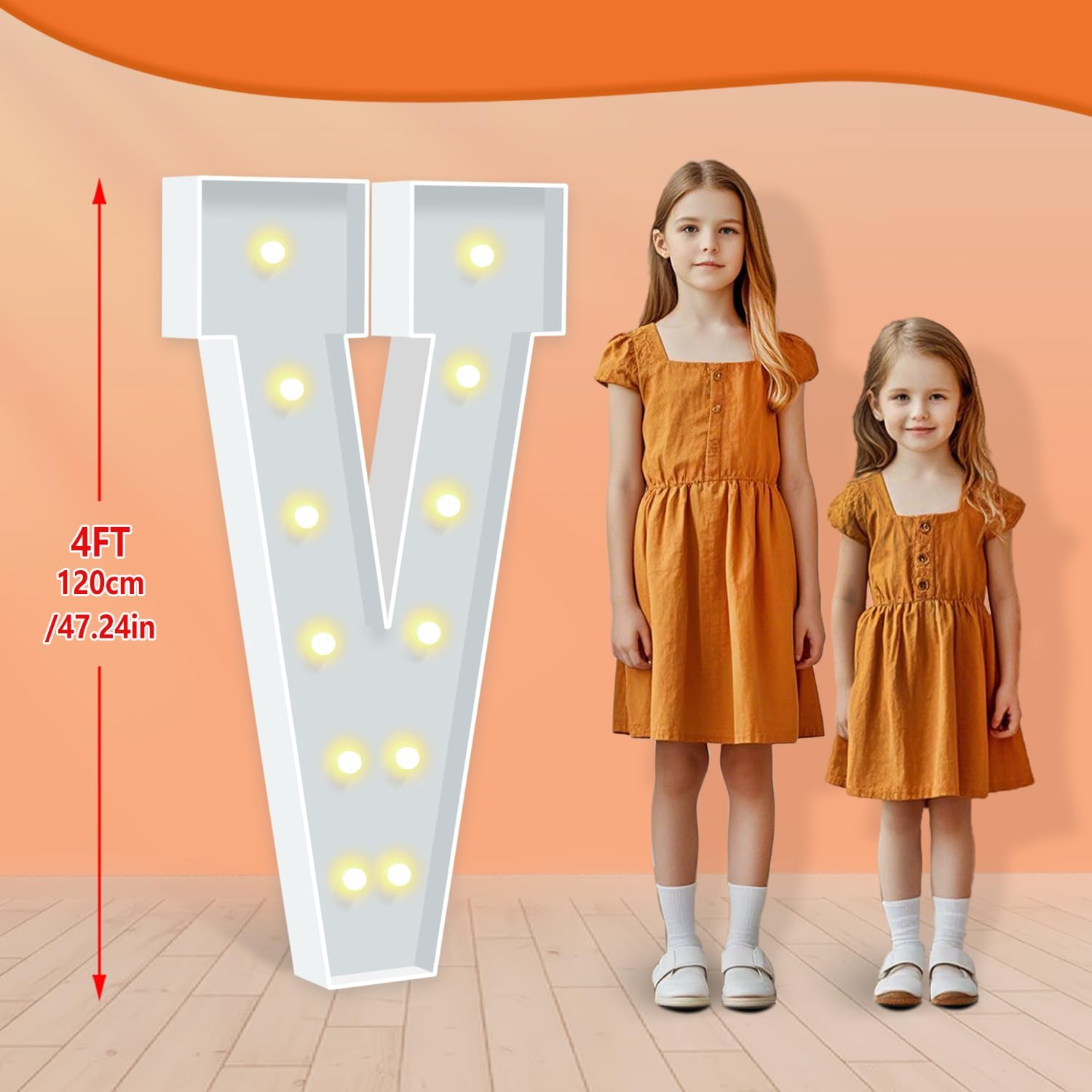 - BRIGHT & SAFE LIGHTING: The light up letters are powered by 3 AA batteries(not included), ensuring the safety of all your guests. There's a switch on the battery compartment, you can switch the Warm Yellow led light from steady to cheerful flashing, ideal for creating a cozy, inviting ambiance to any celebration or event.