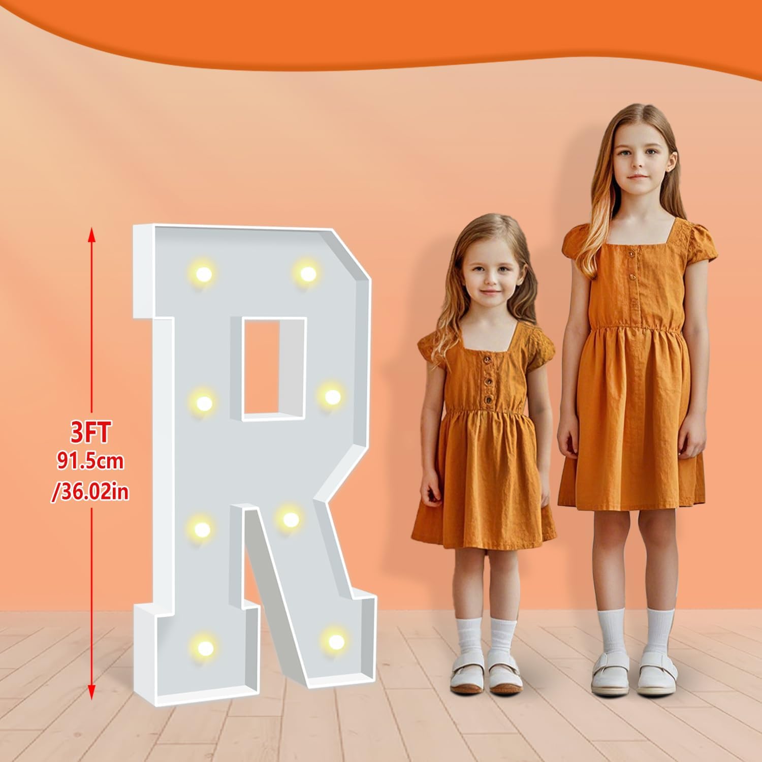 3FT Marquee Letters, Large Marquee Light Up Letters, Mosaic Balloon Frame Letter for Engagement Wedding Decorations Birthday Party Backdrop Decor, Balloon Arch Kit Letter R