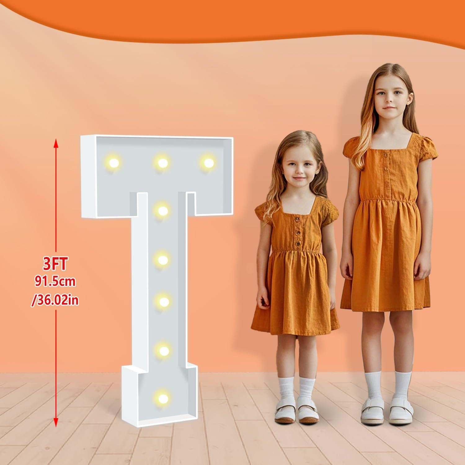 3FT Light Up Marquee Letters T, Large Lighted Letters for Party Backdrop Decor, Mosaic Cardboard Letter for Weddings, Birthdays, Anniversaries, New Year's Celebrations, Easy to Assemble