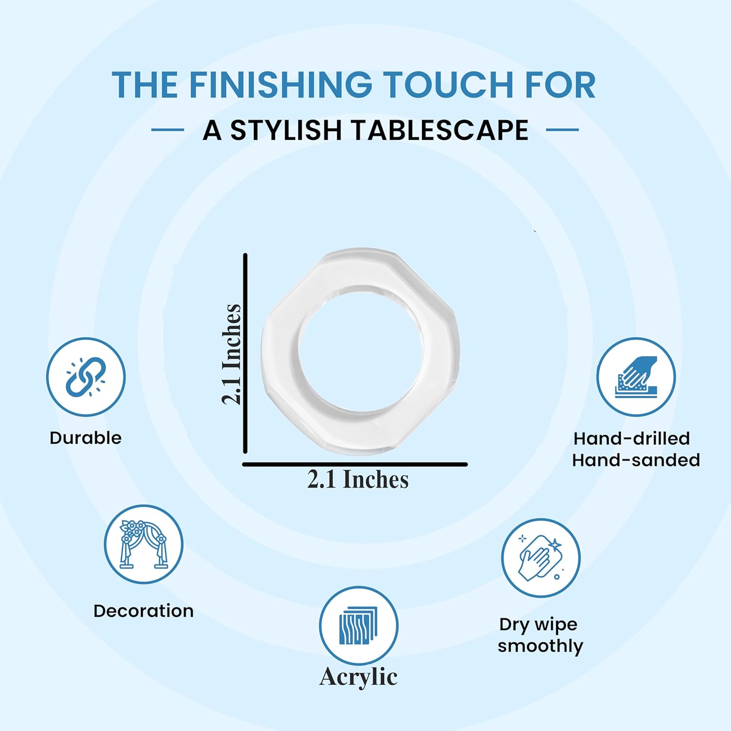- ✅ PERFECT SIZE & PACK: Set of 12 clear acrylic napkin rings, measuring 2.25 x 2.25 x 0.5 inches, ideal for any dining setup.